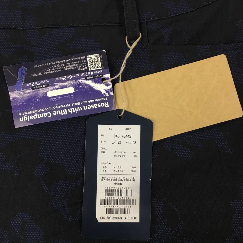 【新品】ロサーセン スカート ネイビー ハイビスカス柄 内側インナーパンツ レディース L ゴルフウェア Rosasen