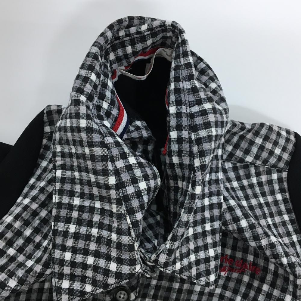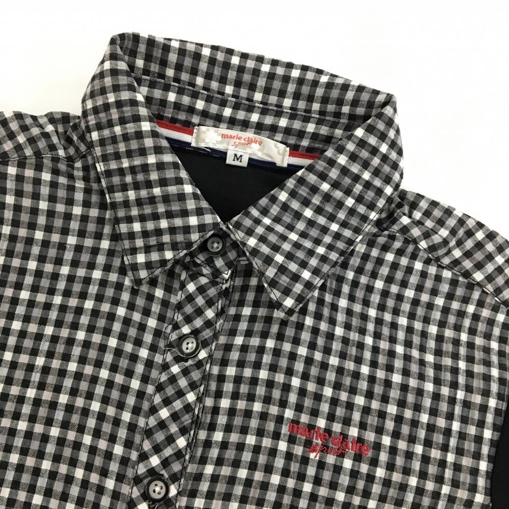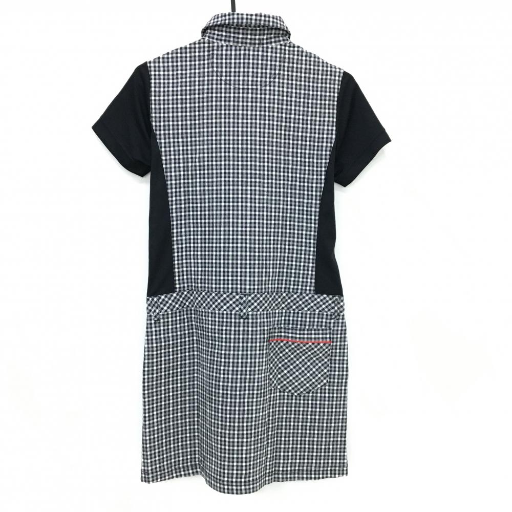 マリクレールスポール 半袖ポロワンピース 黒×白 一部チェック ロゴレッド レディース M ゴルフウェア marie claire