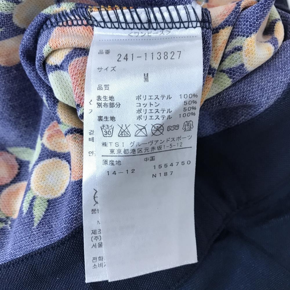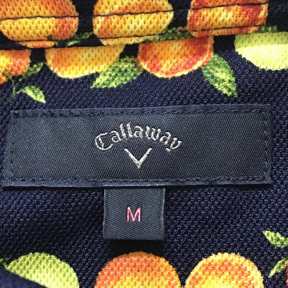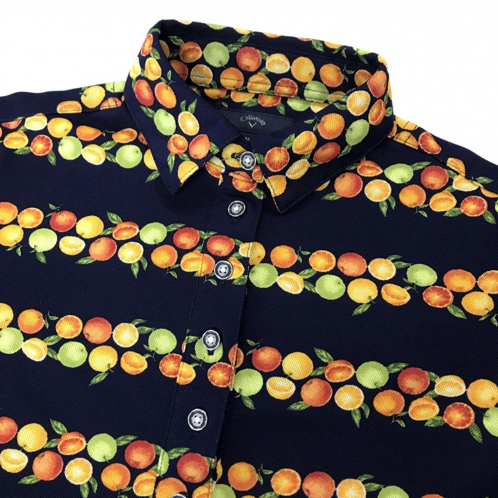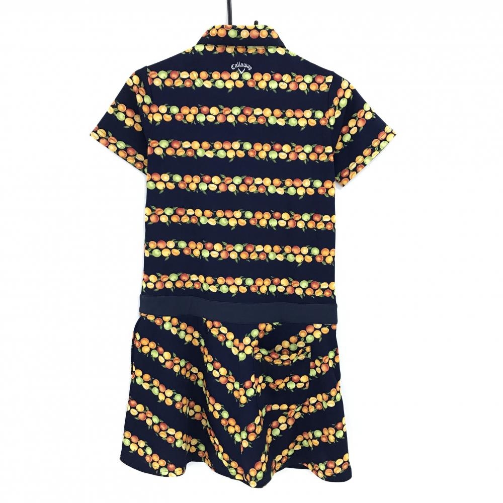 【超美品】キャロウェイ 半袖ポロワンピース ネイビー×オレンジ 果実柄 オレンジ ボーダー調 レディース M ゴルフウェア Callaway