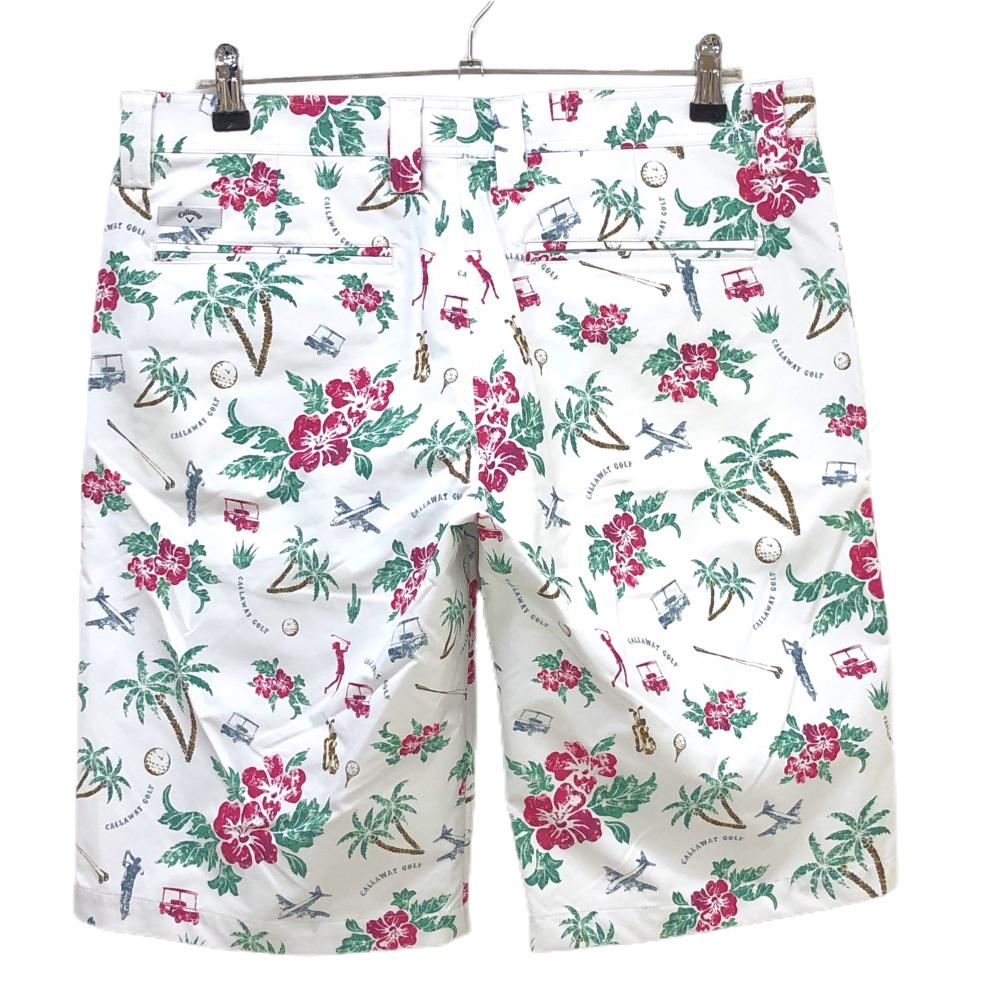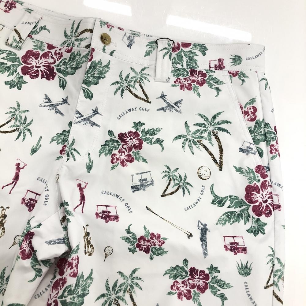【新品】キャロウェイ ハーフパンツ 白×グリーン×ボルドー系 総柄 ヤシの木 花 メンズ LL ゴルフウェア Callaway