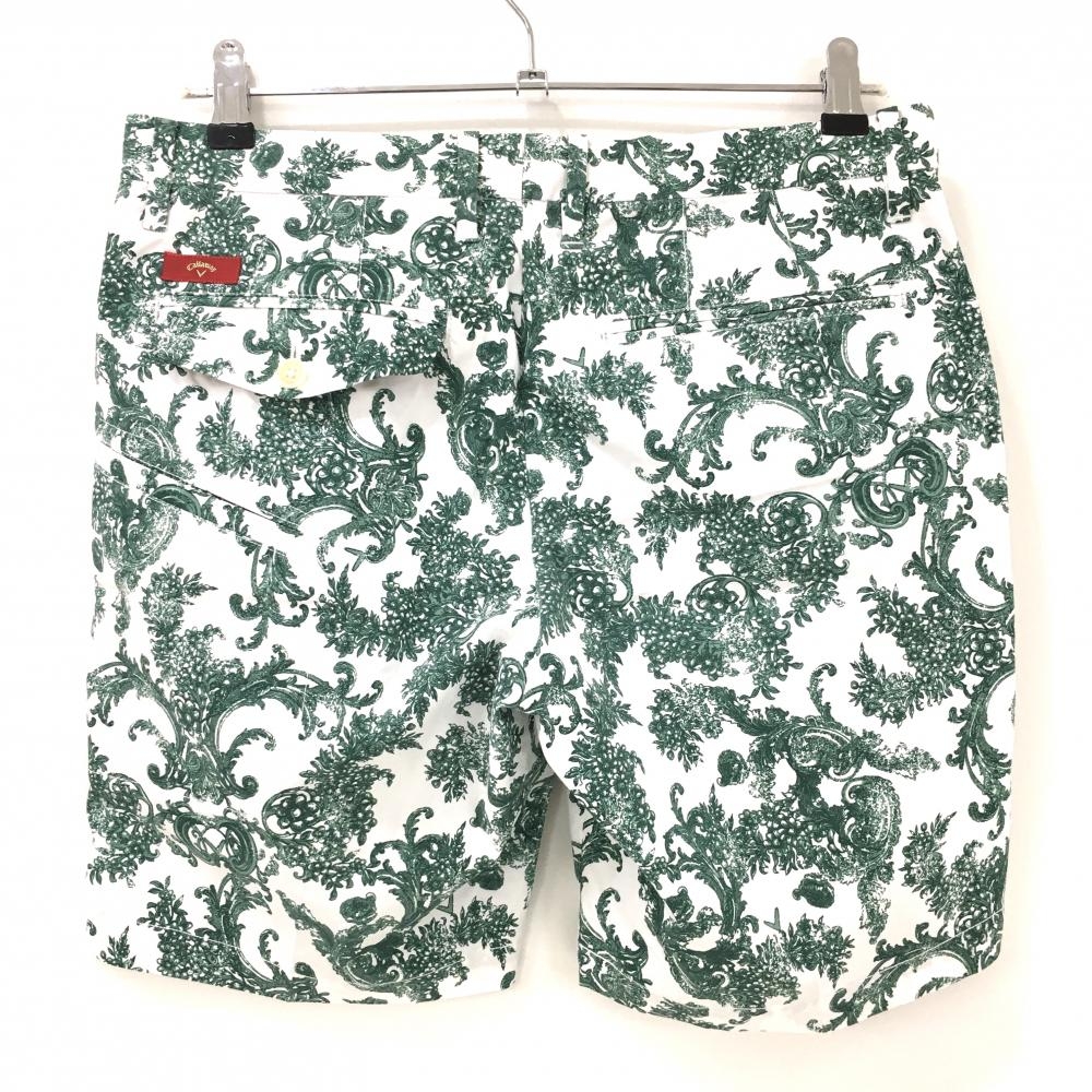 【美品】キャロウェイ レッドレーベル ハーフパンツ 白×グリーン系 総柄 ストレッチ メンズ M ゴルフウェア Callaway