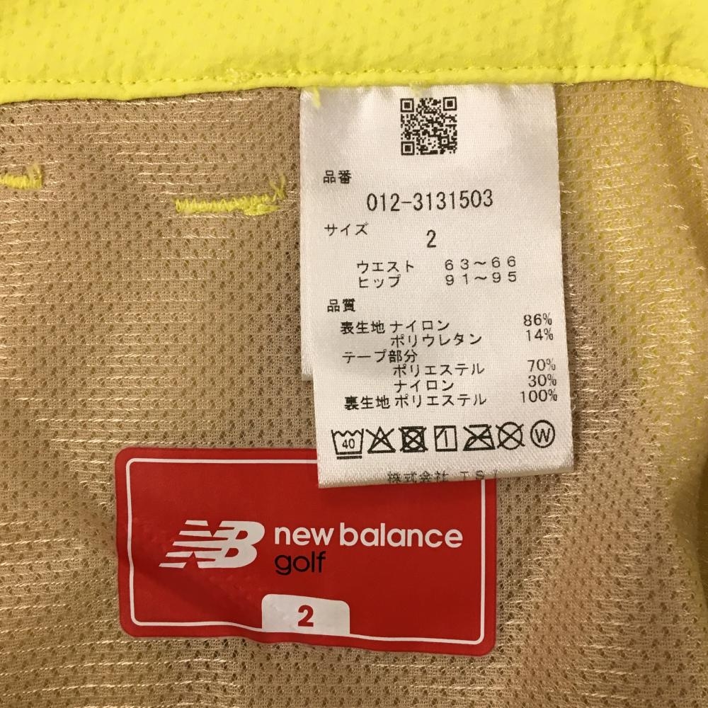 【美品】ニューバランスゴルフ パンツ イエロー×グレー 凹凸生地 サイドライン ストレッチ レディース 2(L) ゴルフウェア New Balance