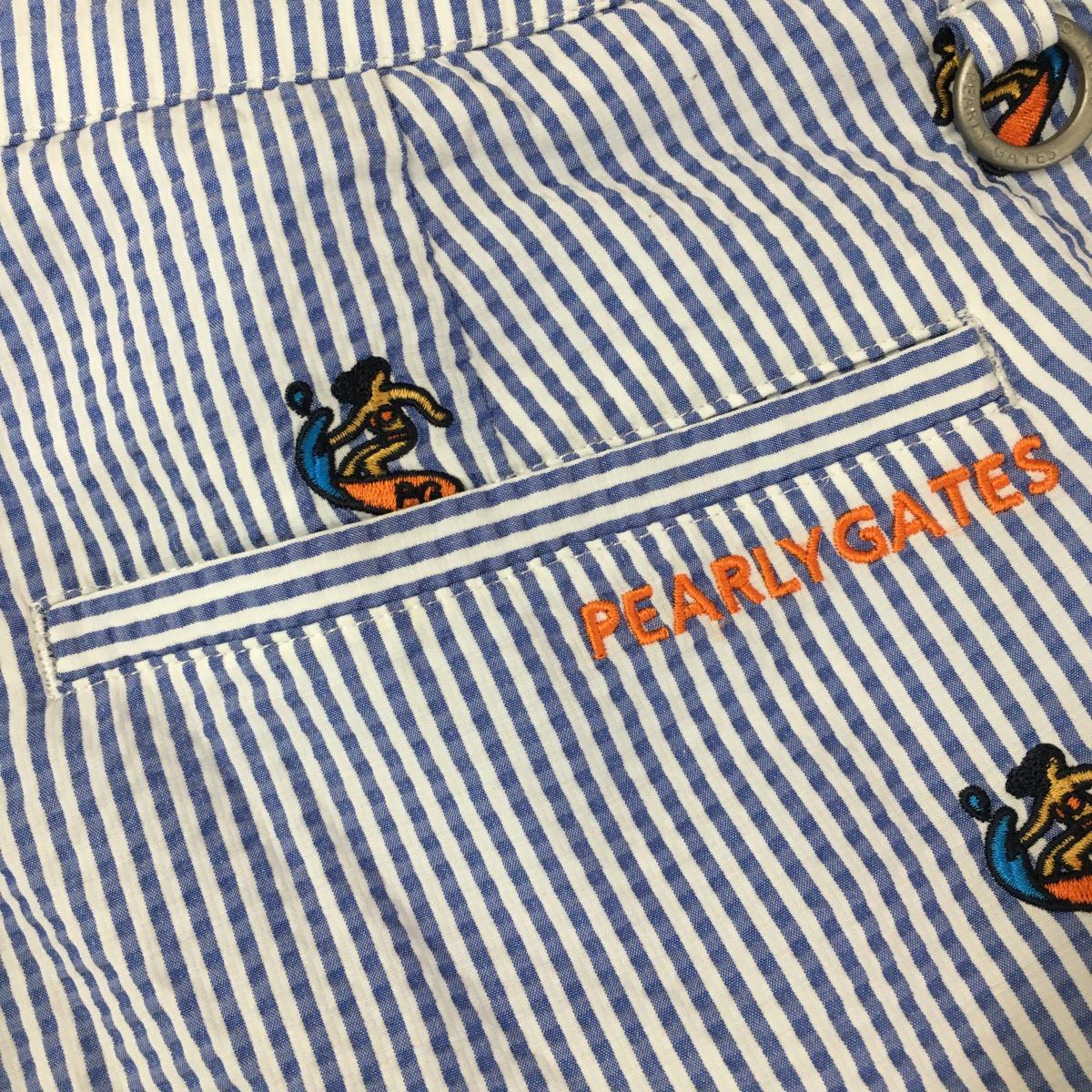 パーリーゲイツ ショートパンツ 白×ネイビー ストライプ サーファー刺しゅう レディース M ゴルフウェア PEARLY GATES