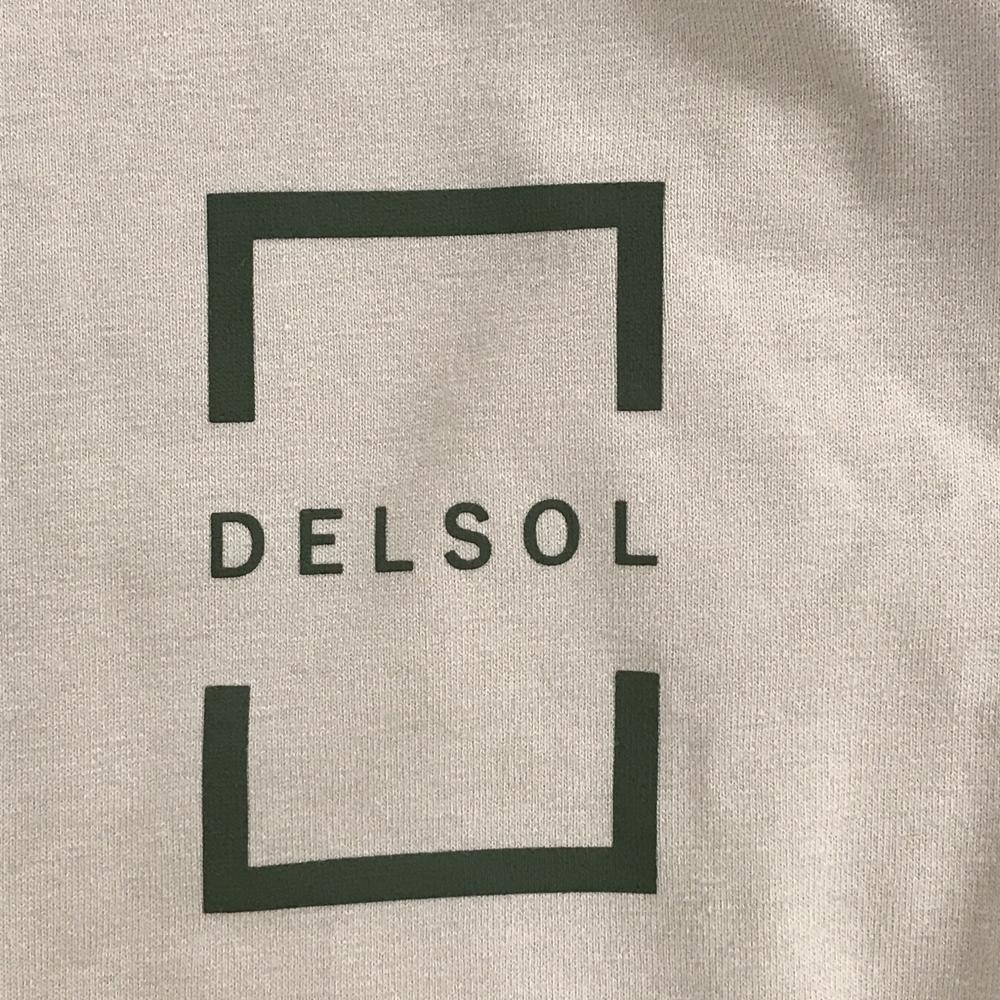 【超美品】デルソル 半袖ハイネックシャツ ベージュ×カーキ 背面英字 メンズ M ゴルフウェア DELSOL