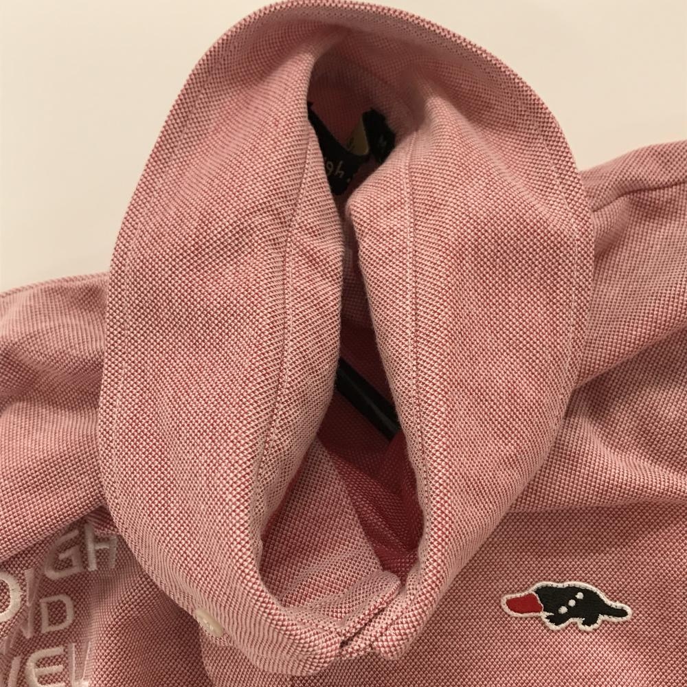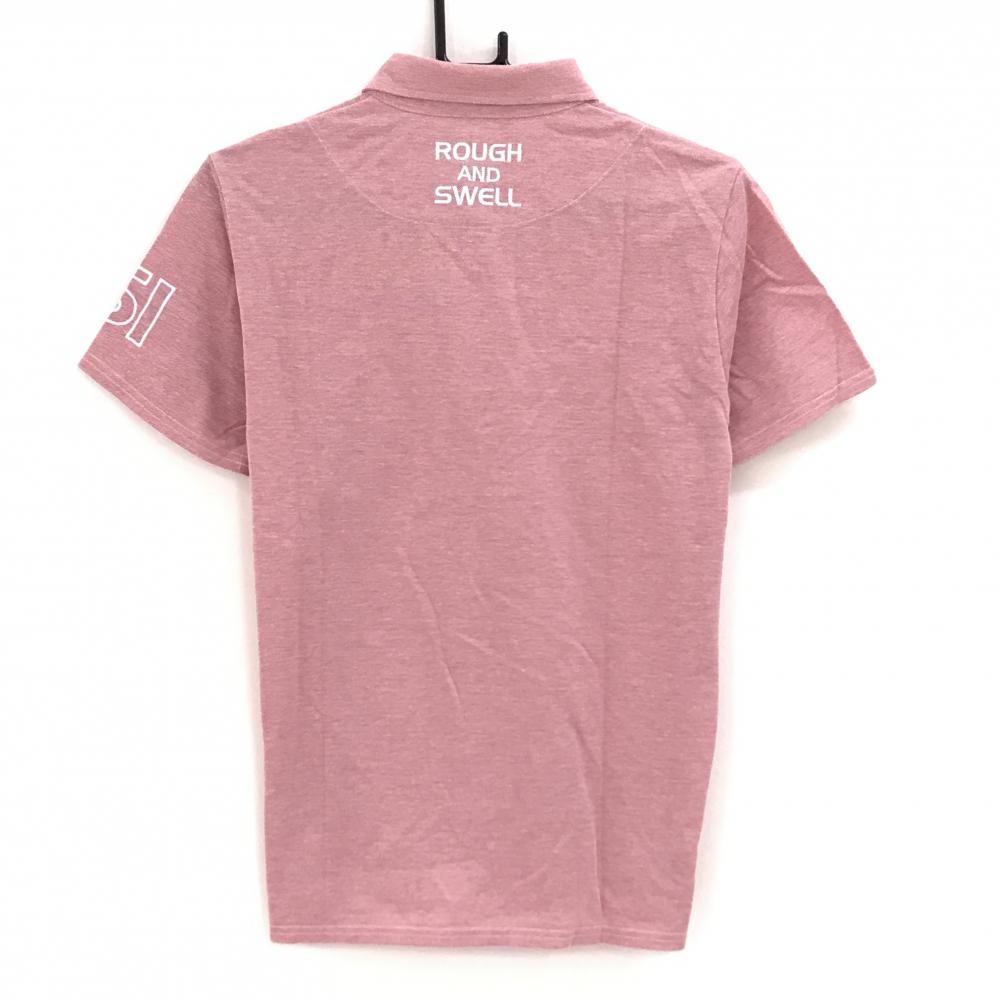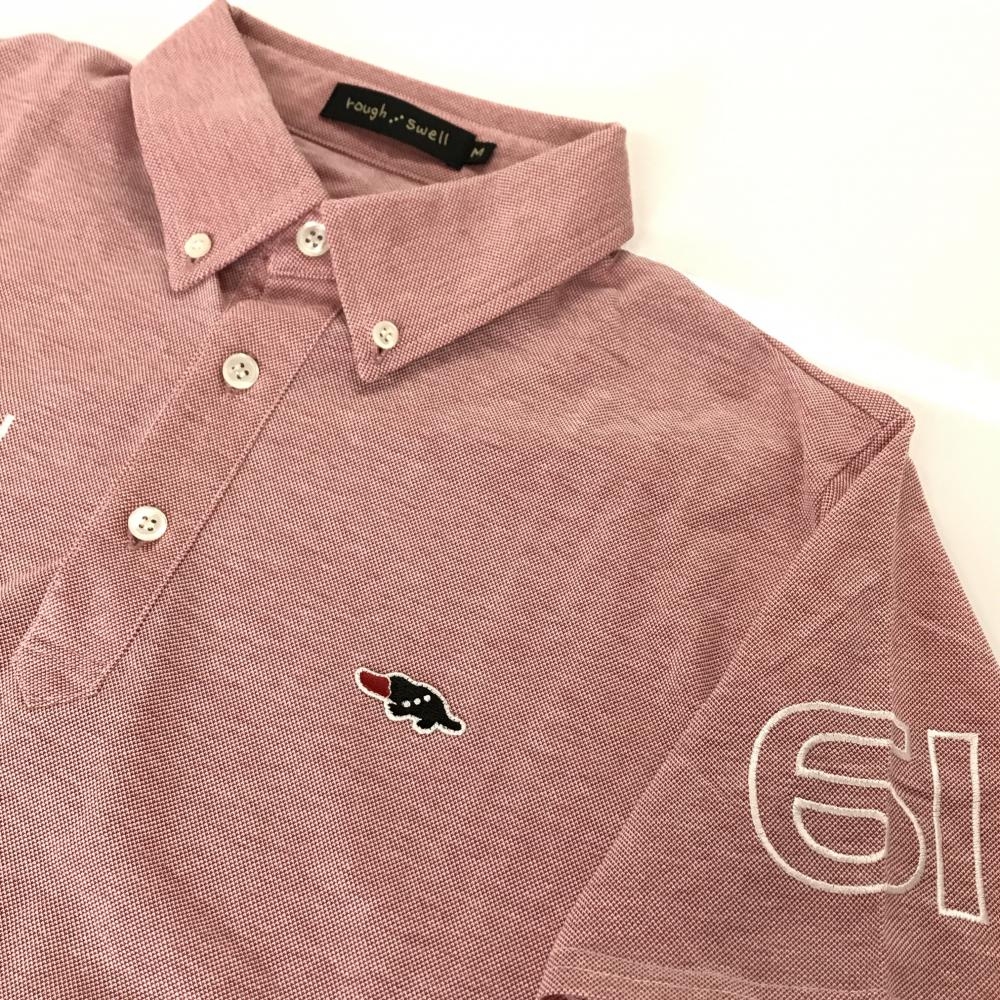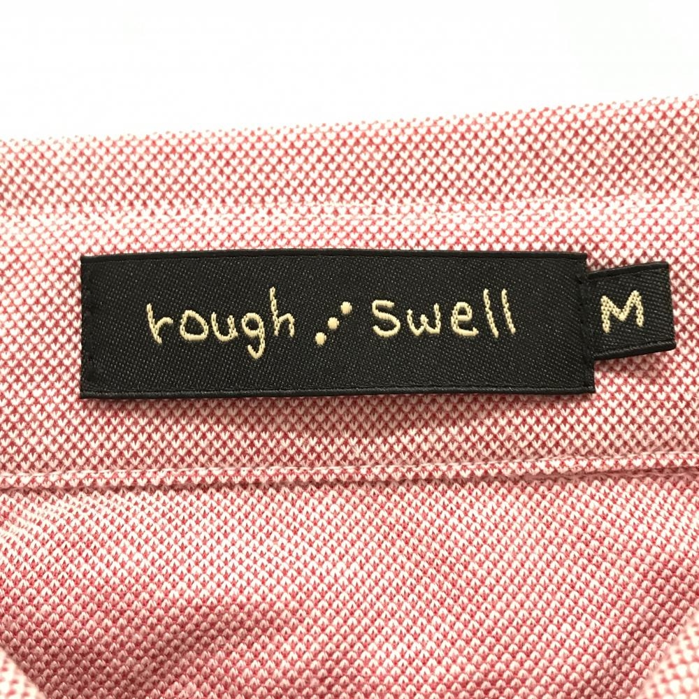 【美品】ラフアンドスウェル 半袖ポロシャツ レッド系 ロゴ刺しゅう ボタンダウン メンズ M ゴルフウェア rough&swell