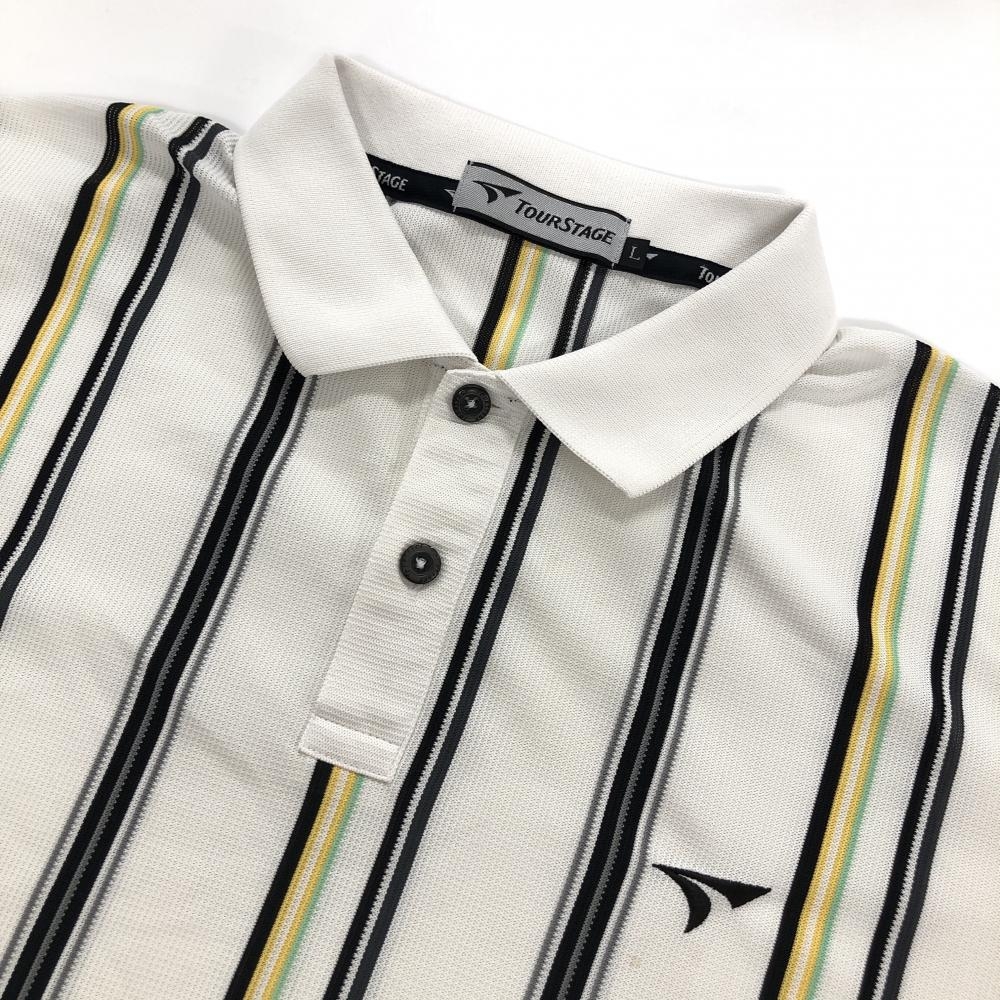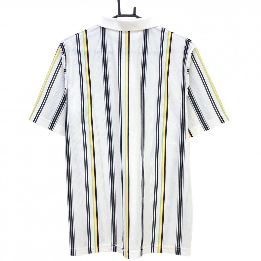 テーラーメイド 半袖ポロシャツ 白×黒×イエロー ストライプ 透け感 メンズ L ゴルフウェア TaylorMade