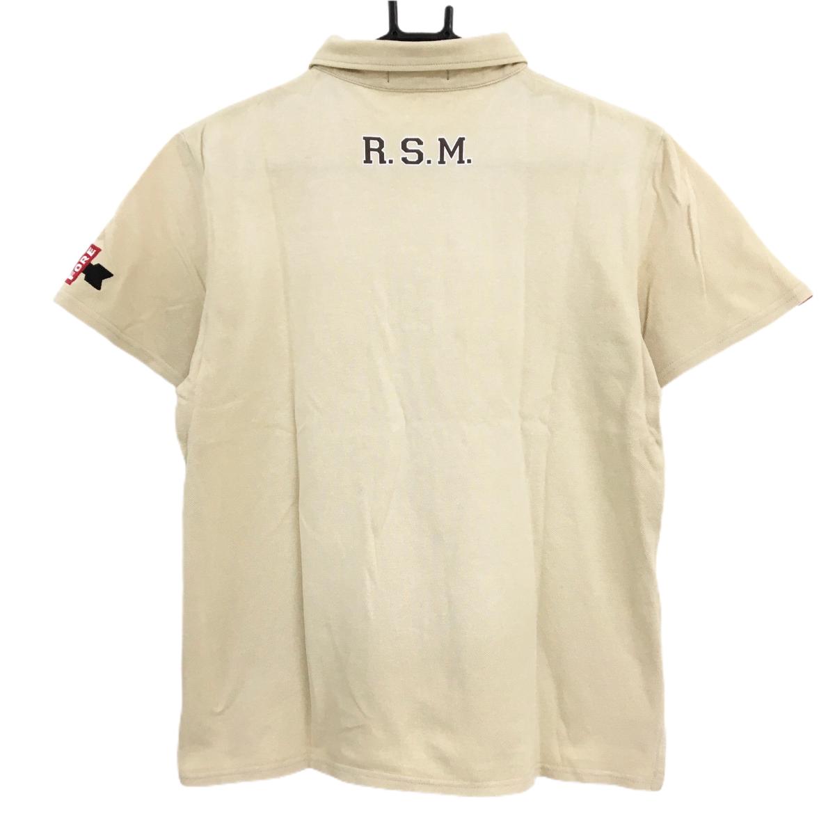 ラフアンドスウェル 半袖ポロシャツ ベージュ 刺しゅうワッペン ボタンダウン メンズ M ゴルフウェア rough&swell