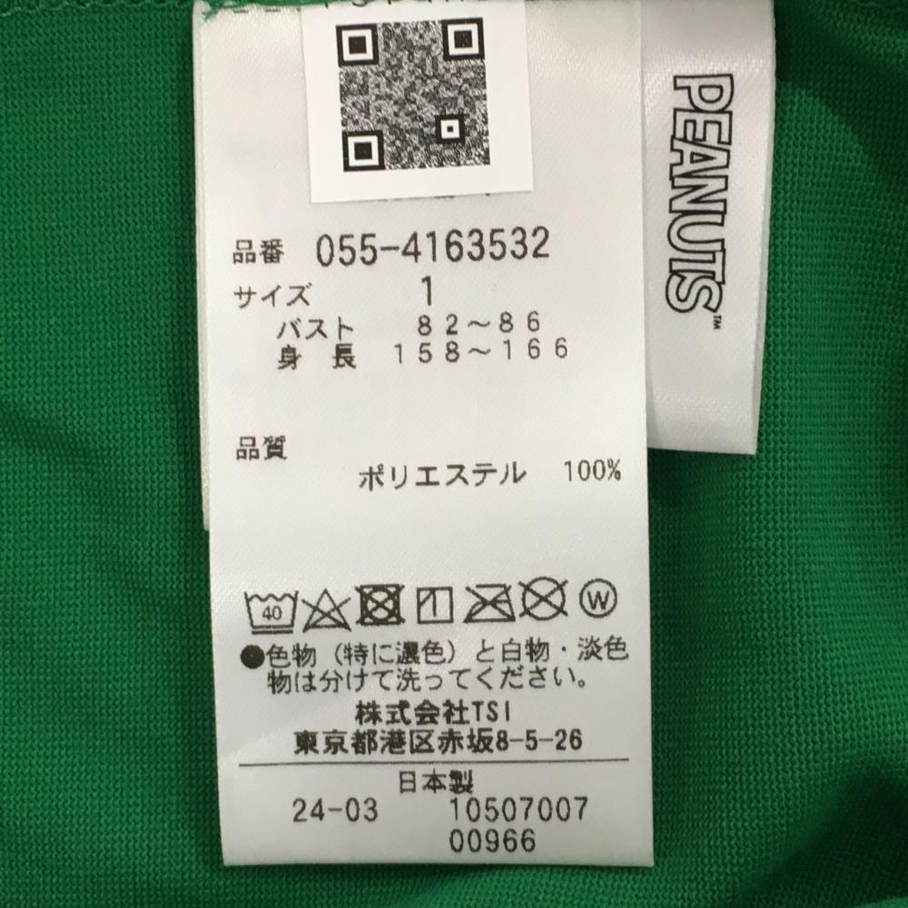 【新品】パーリーゲイツ×PEANUTS Tシャツ グリーン スヌーピー 背面プリント レディース 1(M) ゴルフウェア 2024年モデル PEARLY GATES