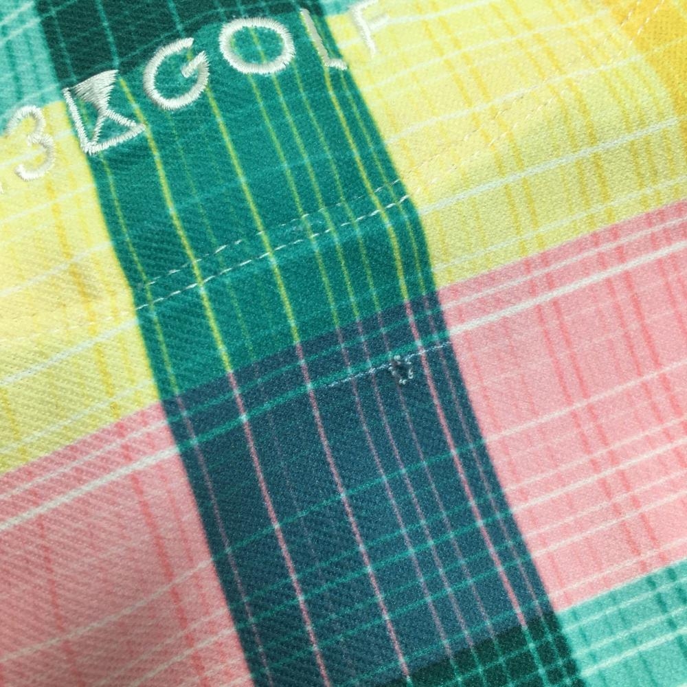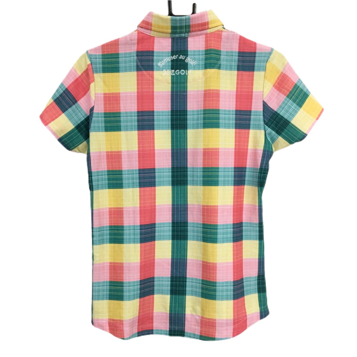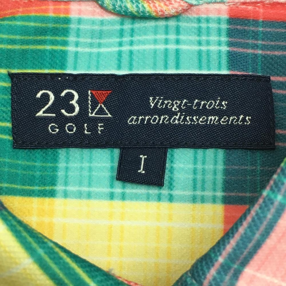 【超美品】23区ゴルフ 半袖ポロシャツ レッド×イエロー×グリーン チェック ワッペン レディース I(M) ゴルフウェア 23区