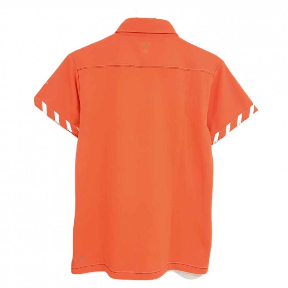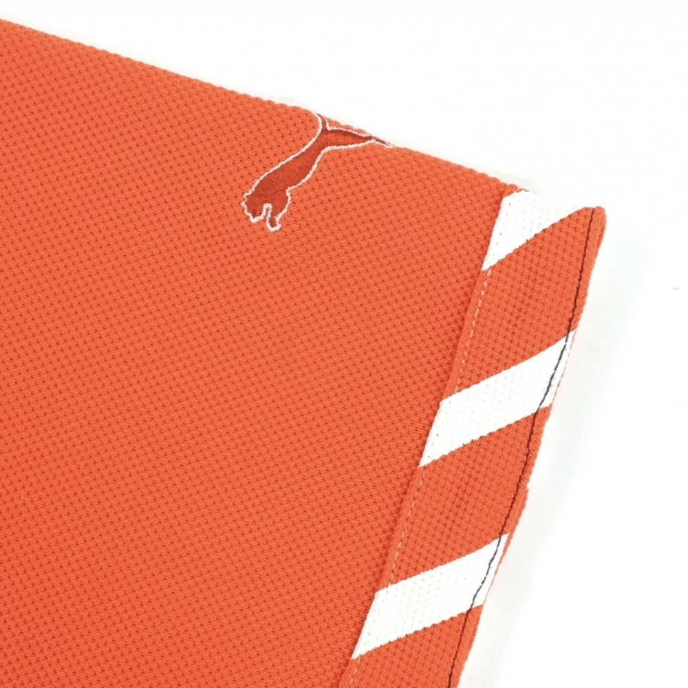 【美品】プーマ 半袖ポロシャツ オレンジ 袖口斜めストライプ 胸ポケット メンズ M ゴルフウェア PUMA