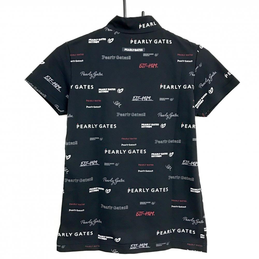 【新品】パーリーゲイツ 半袖ハイネックシャツ 黒×白 ロゴ総柄 日本製 レディース 1(M) ゴルフウェア 2024年モデル PEARLY GATES