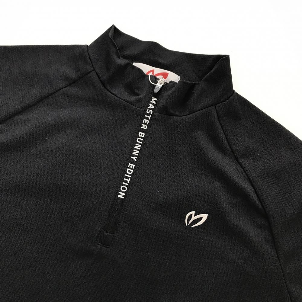 【新品】マスターバニー 半袖ハイネックシャツ 黒×白 ジップロゴ レディース 2(L) ゴルフウェア MASTER BUNNY EDITION