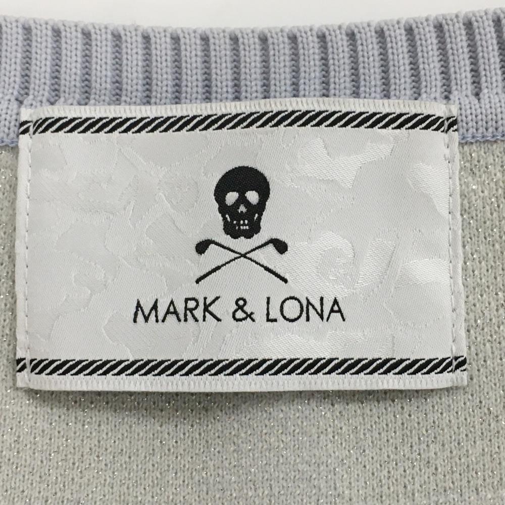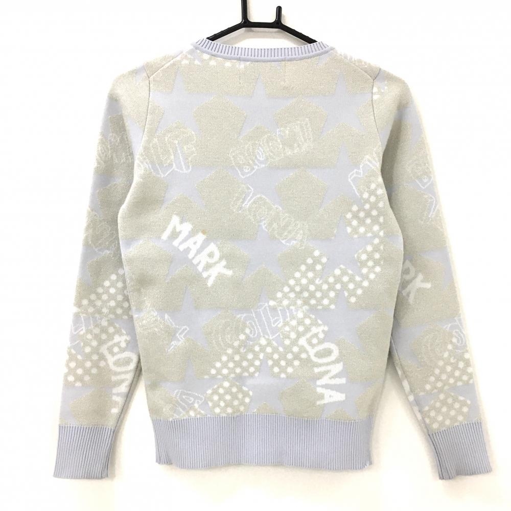 マークアンドロナ セーター ライトブルー×白 総柄 一部ドット ウール混 ニット Vネック レディース 36(S) ゴルフウェア MARK&LONA
