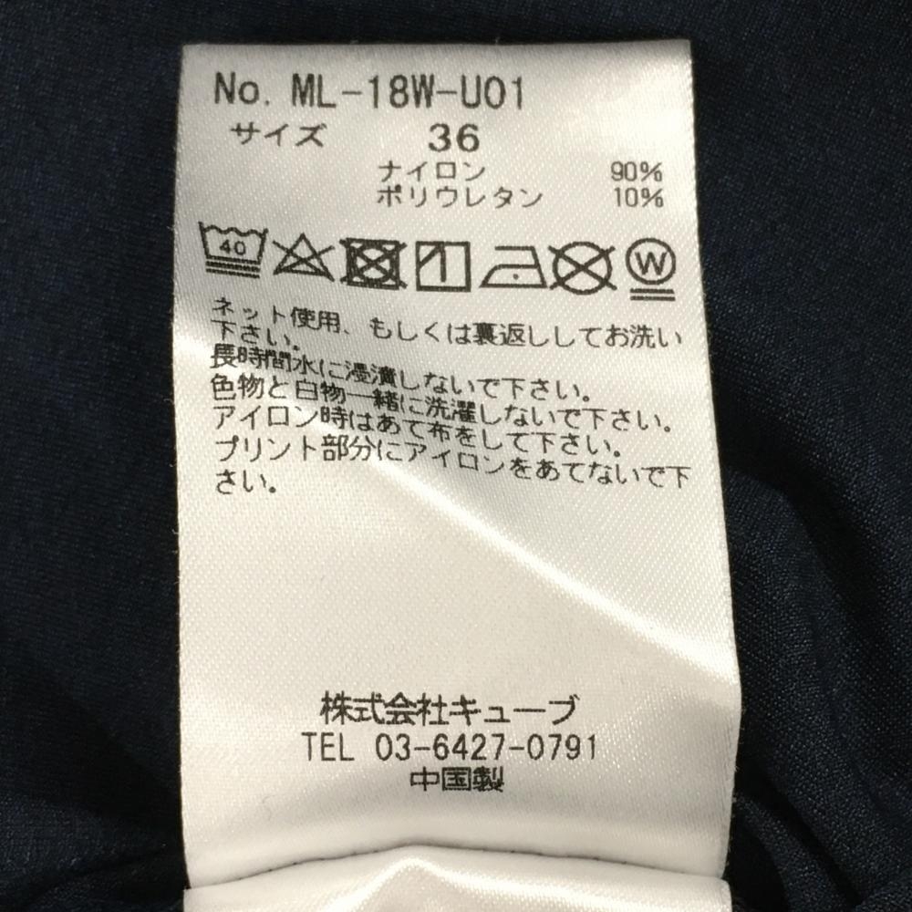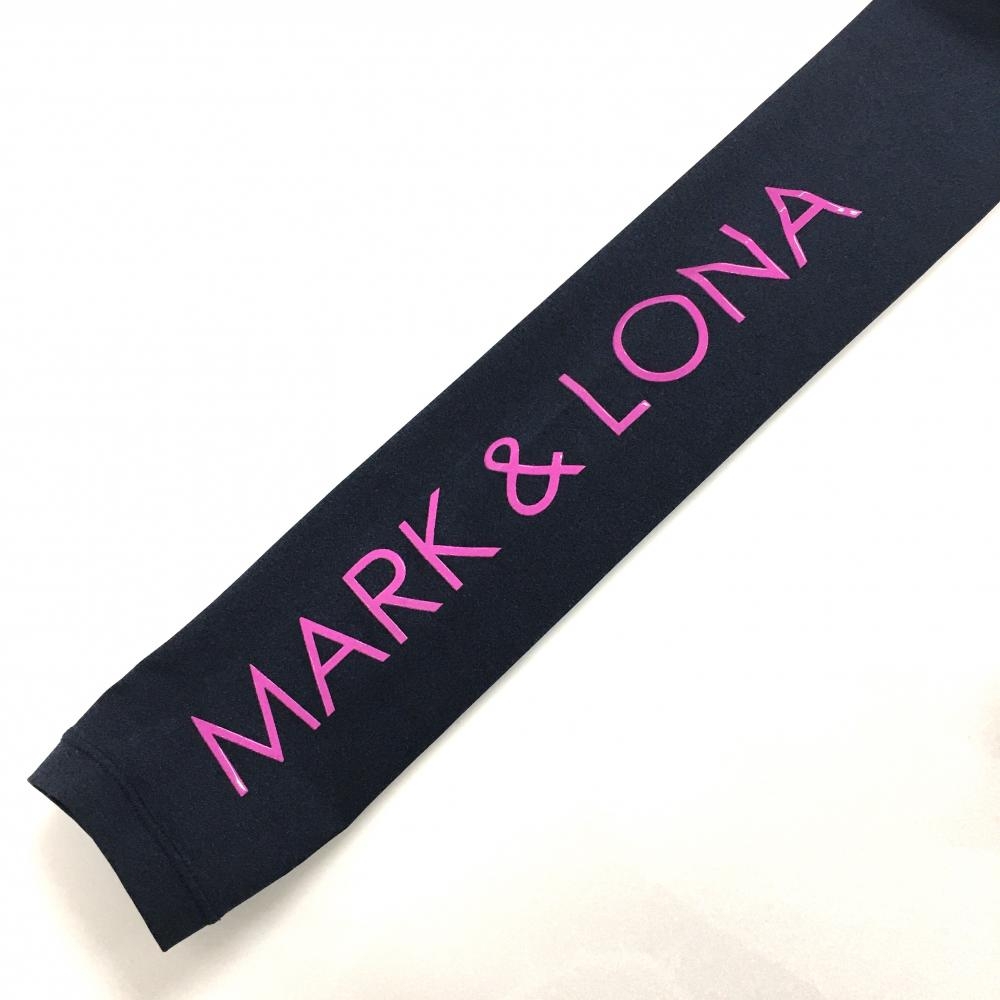 【超美品】マークアンドロナ 長袖ハイネックシャツ ネイビー×ピンク ビッグスカル 袖ロゴ レディース 36(S) ゴルフウェア MARK&LONA