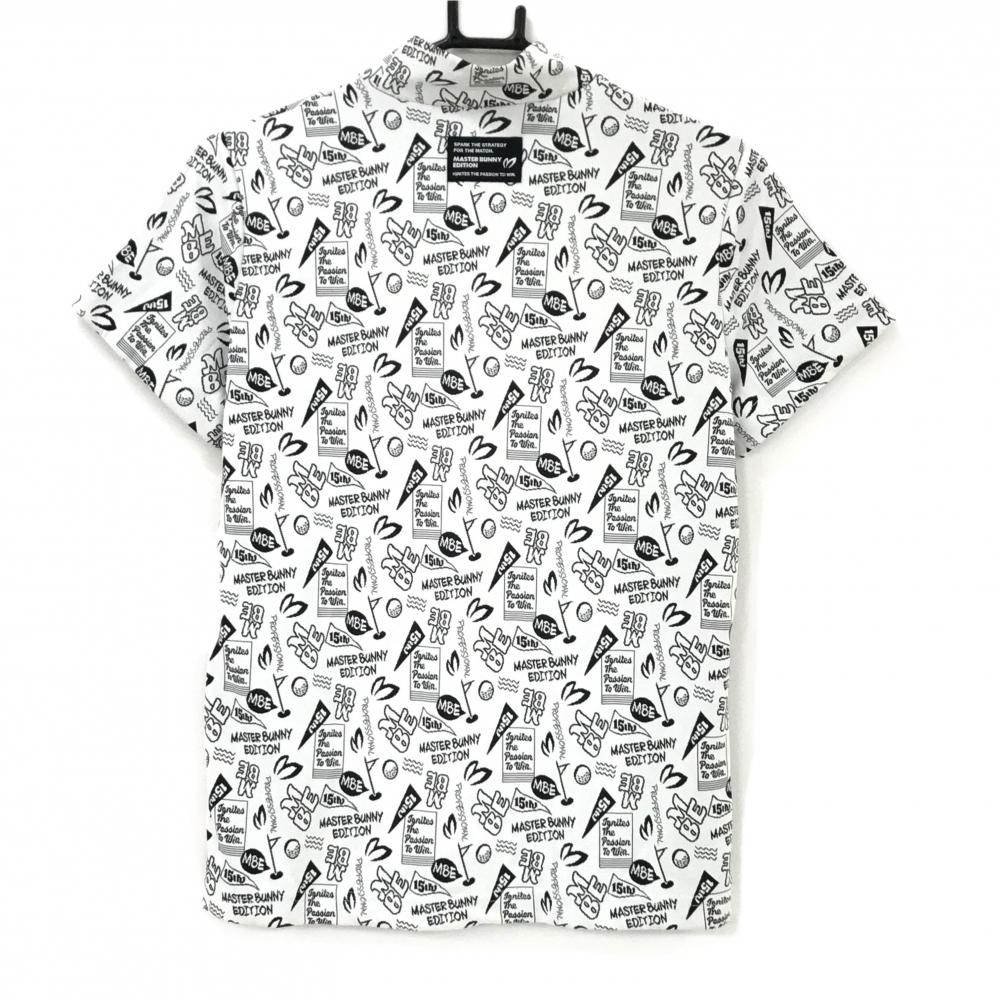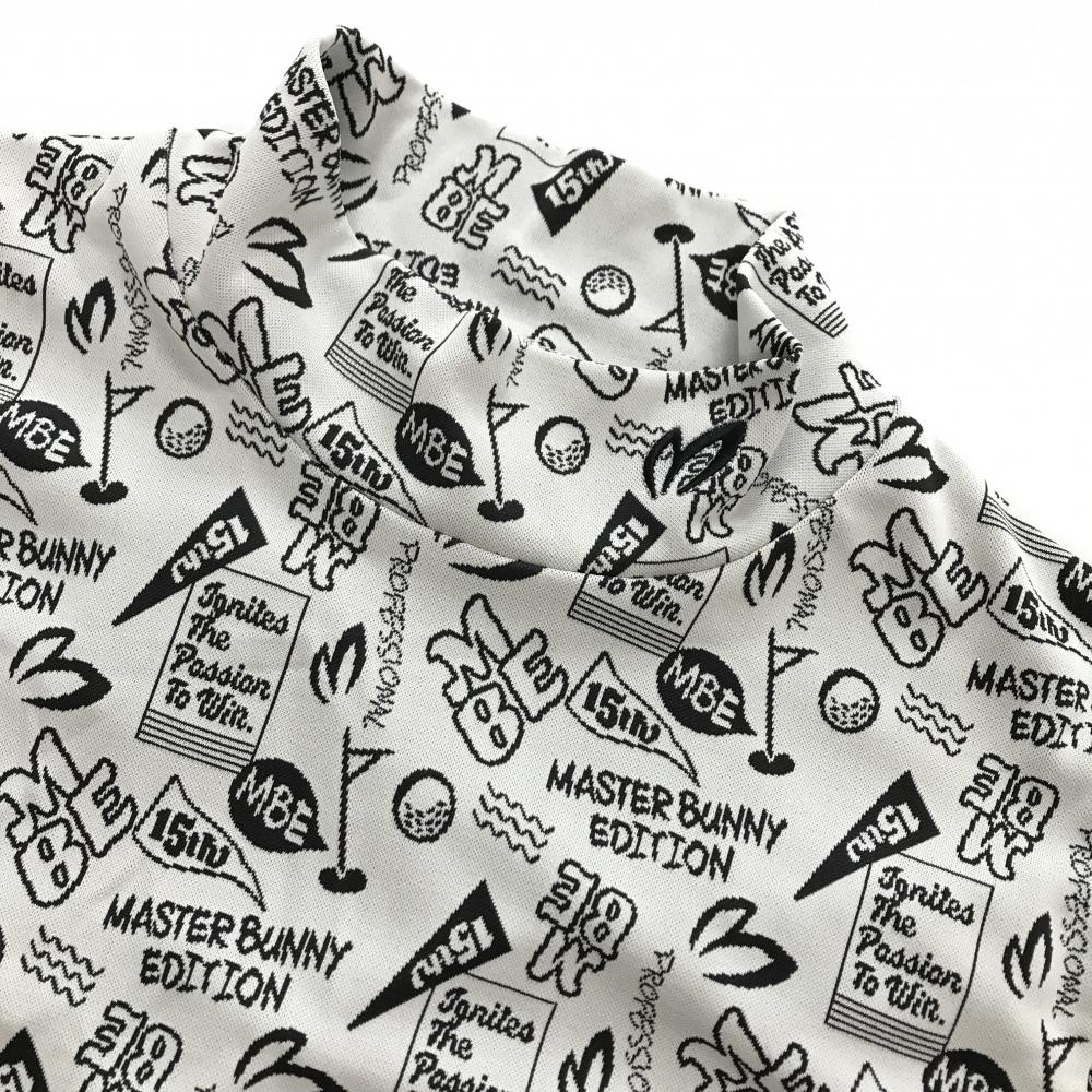 【超美品】マスターバニー 半袖ハイネックシャツ 白×黒 ロゴ総柄 レディース 1(M) ゴルフウェア 2025年モデル MASTER BUNNY EDITION
