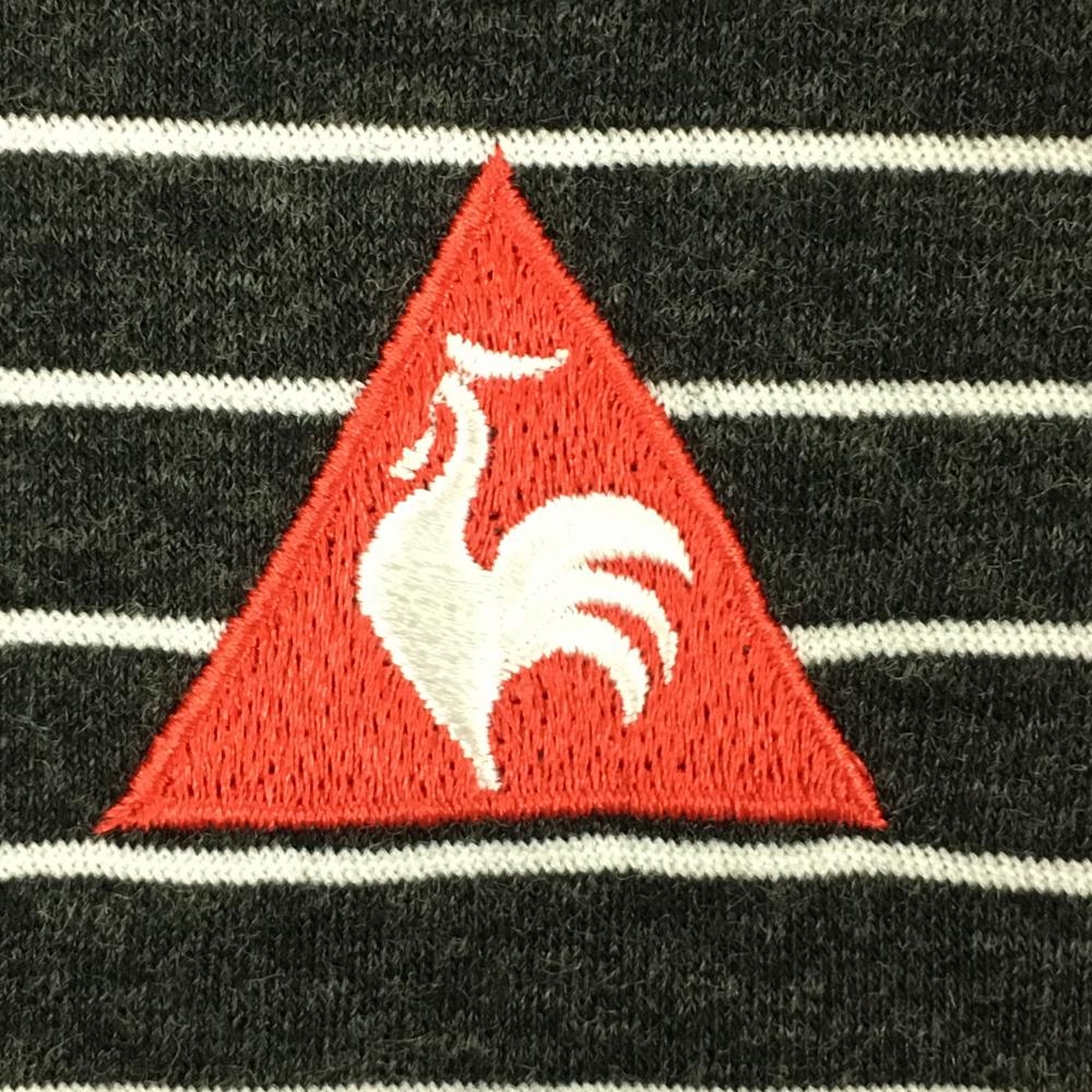 【超美品】ルコックゴルフ 長袖ハイネックシャツ 杢ダークグレー×白 ボーダー ロゴ刺しゅう レディース L ゴルフウェア le coq sportif