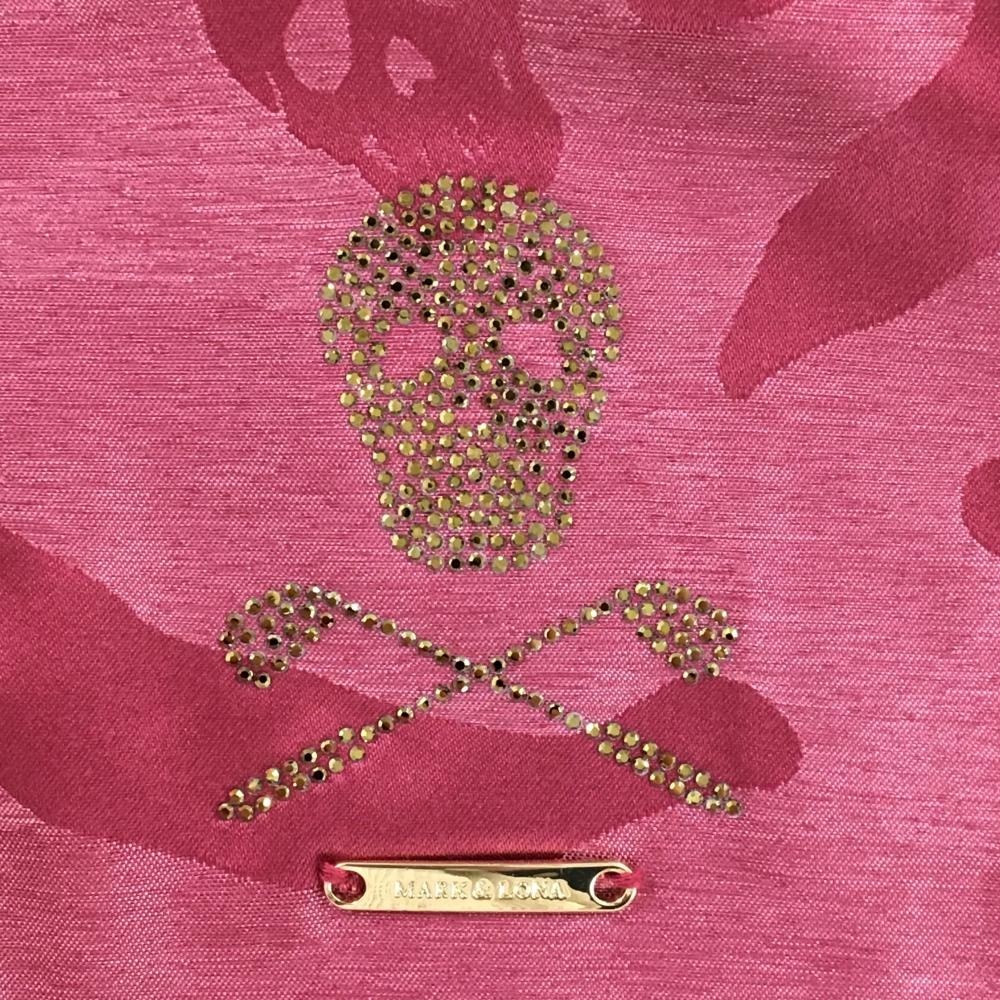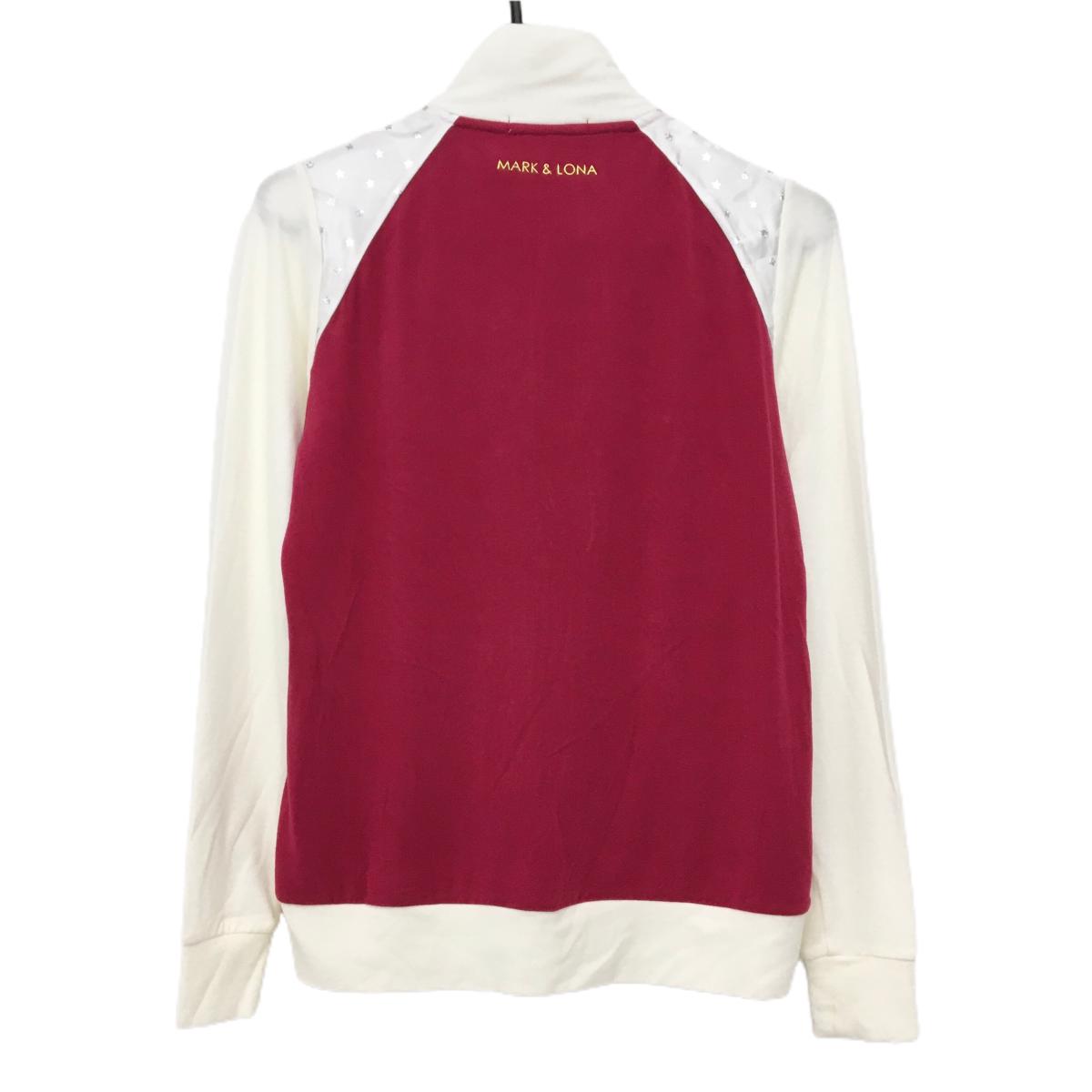 【美品】マークアンドロナ 異素材ジャケット ボルドー系×白 前身頃迷彩 一部星柄 微起毛 スカル レディース WM ゴルフウェア MARK&LONA