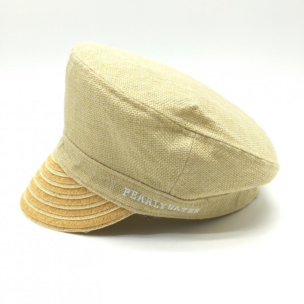 【新品】パーリーゲイツ キャスケット ベージュ×白 ストローハット ロゴ刺しゅう FR ゴルフウェア PEARLY GATES
