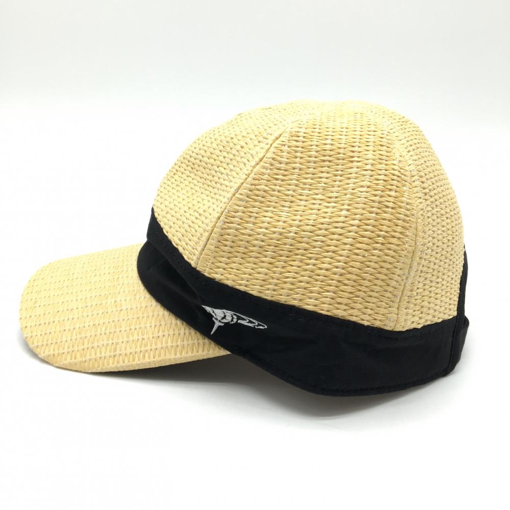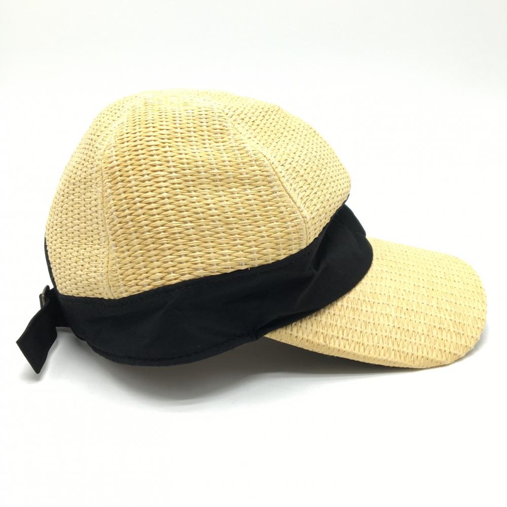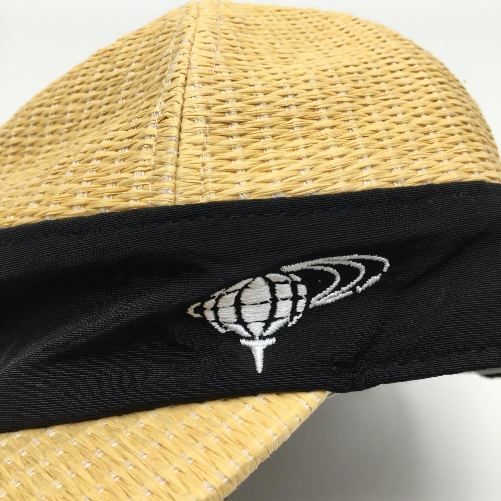 ビームスゴルフ キャップ イエロー系×黒 麦わら調 ロゴ刺しゅう 裏地付き 56-58cm ゴルフウェア BEAMS GOLF