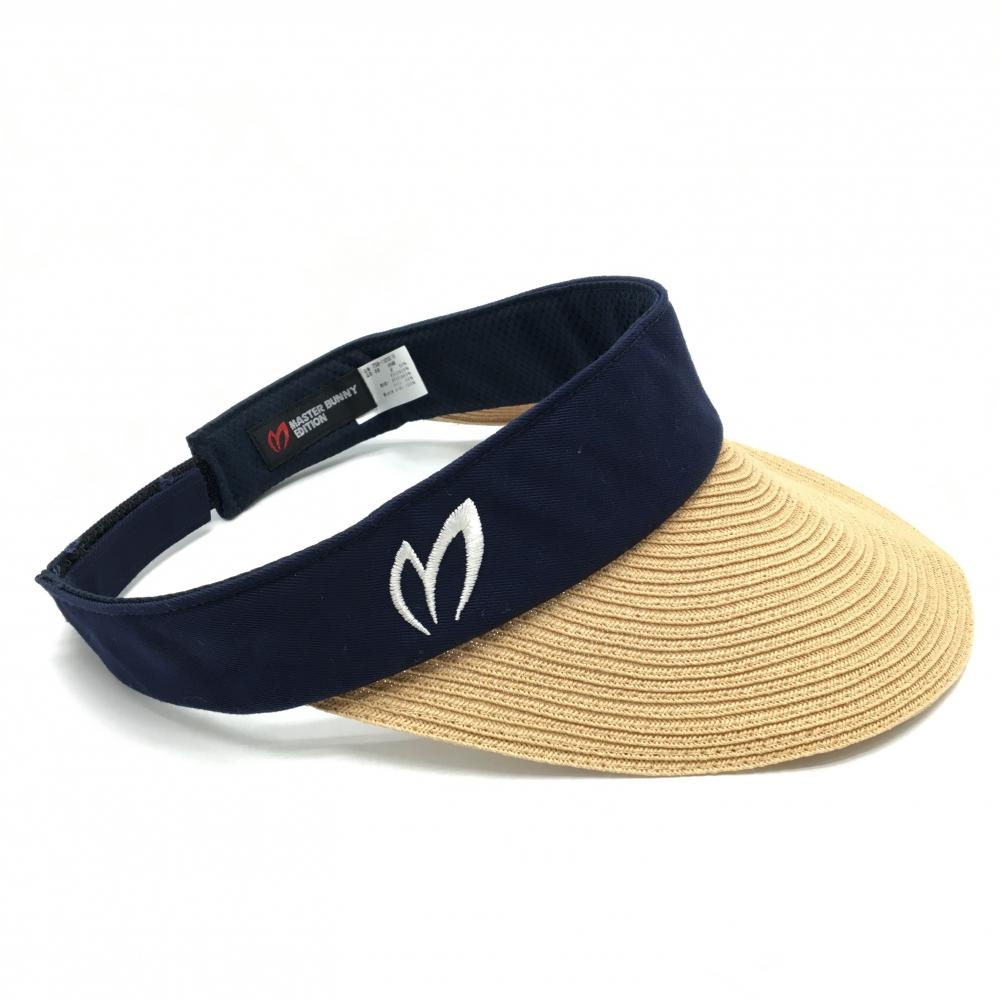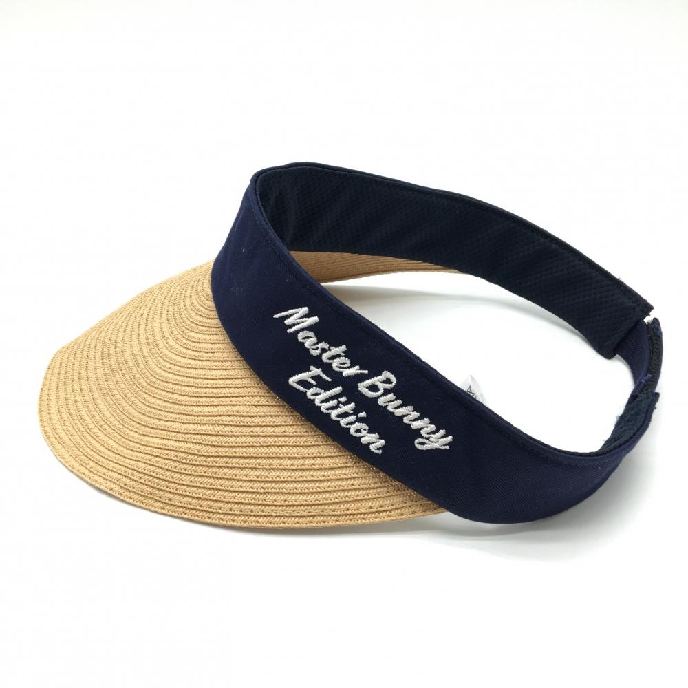 【美品】マスターバニー つば広サンバイザー ライトブラウン×ネイビー ロゴ刺しゅう レディース FR ゴルフウェア MASTER BUNNY EDITION