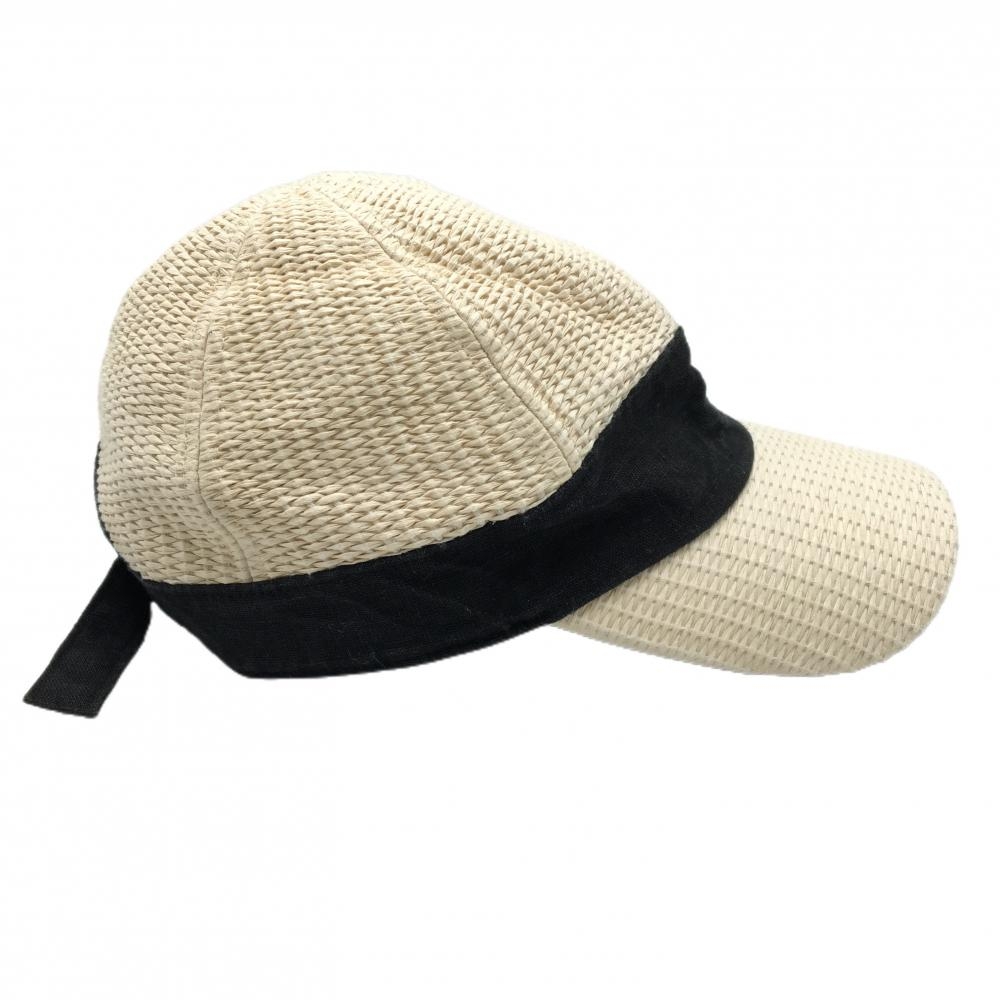 ビームスゴルフ キャップ ライトベージュ×黒 麦わら風 ロゴ刺しゅう ゴルフウェア BEAMS GOLF