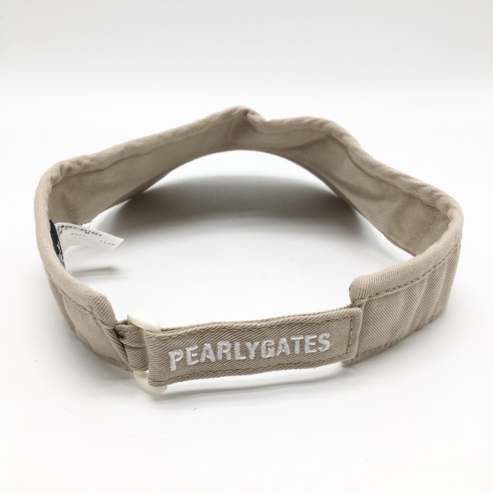 【美品】パーリーゲイツ サンバイザー ベージュ×白 立体ロゴ M ゴルフウェア PEARLY GATES
