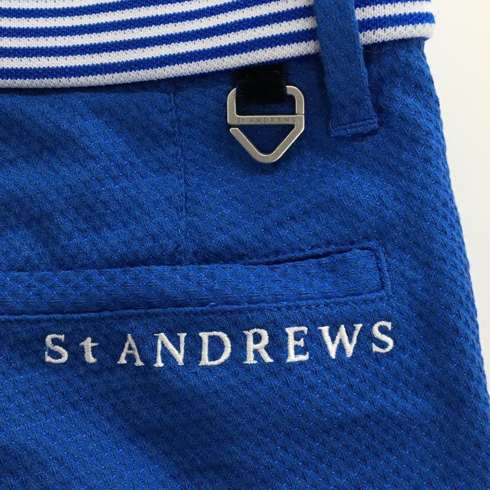 【超美品】セントアンドリュース パンツ ブルー×白 織生地 ウエストボーダー ストレッチ メンズ M ゴルフウェア St ANDREWS