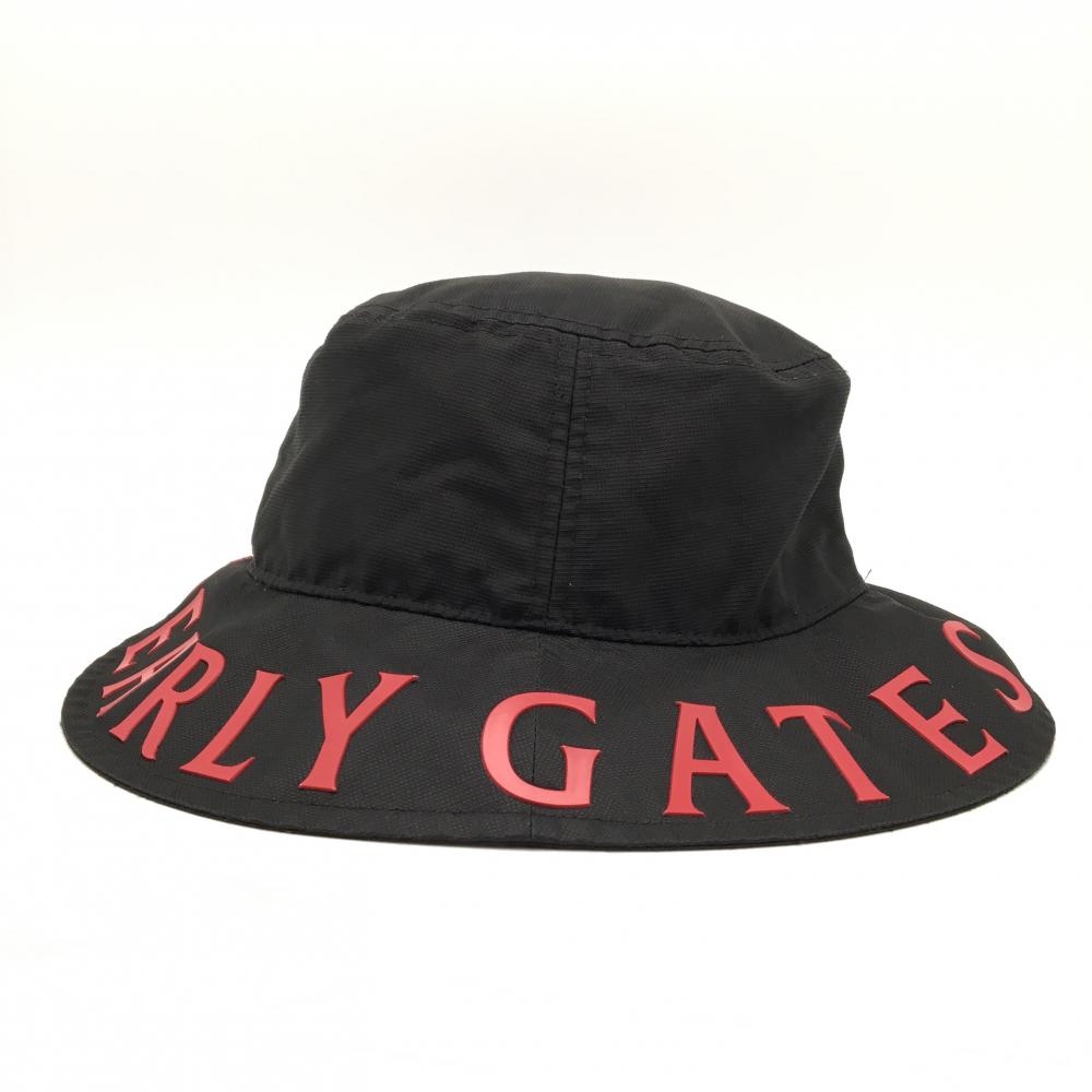 【美品】パーリーゲイツ ハット 黒×レッド つばロゴ FR ゴルフウェア PEARLY GATES
