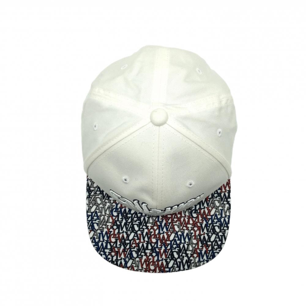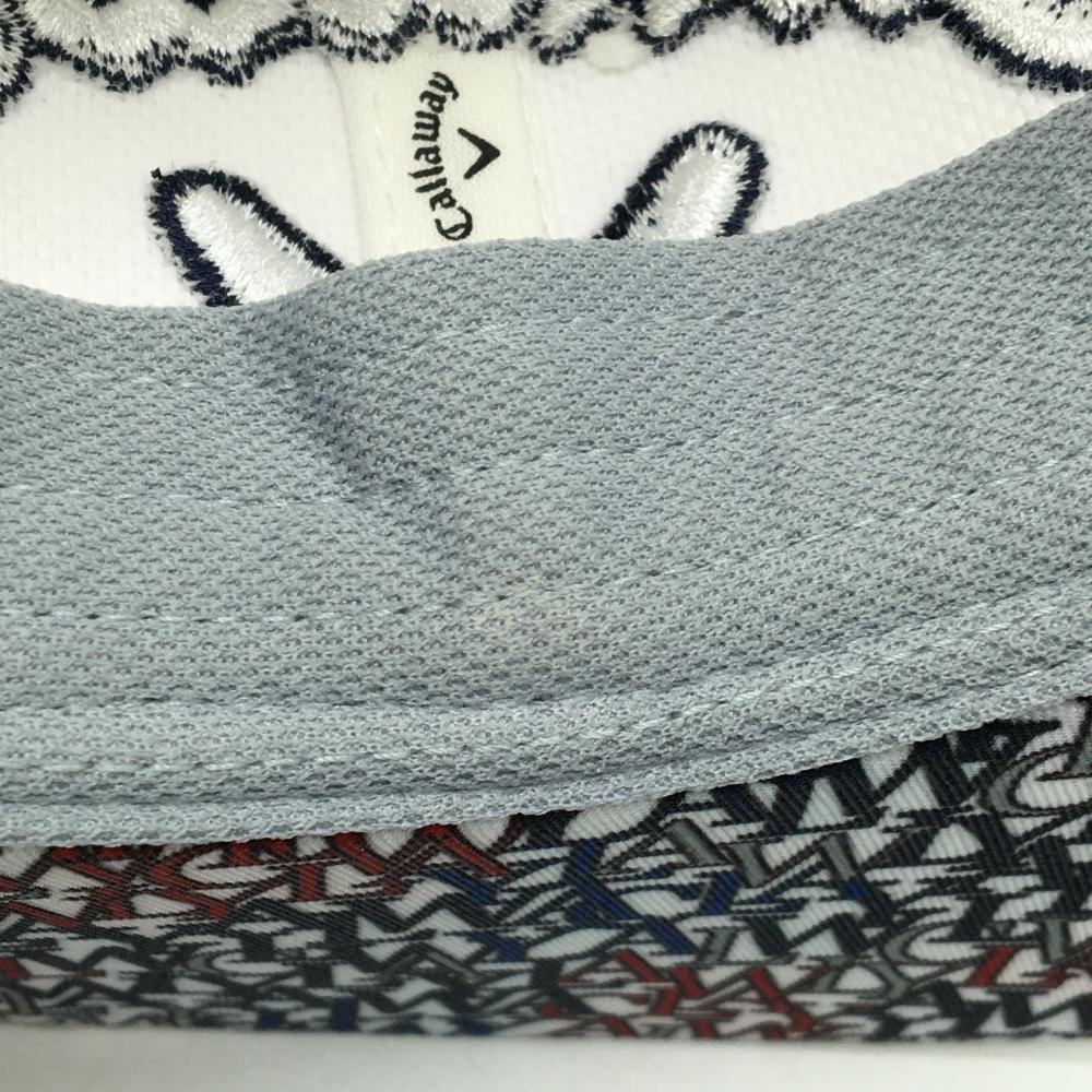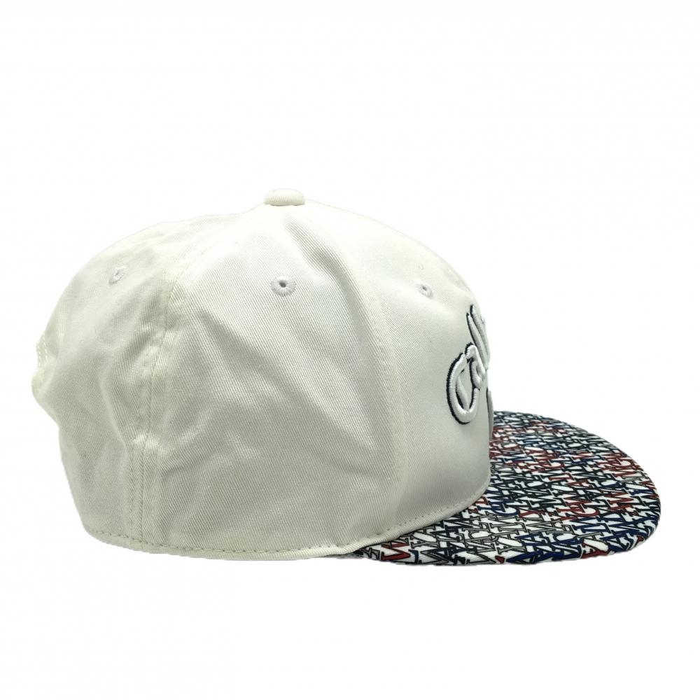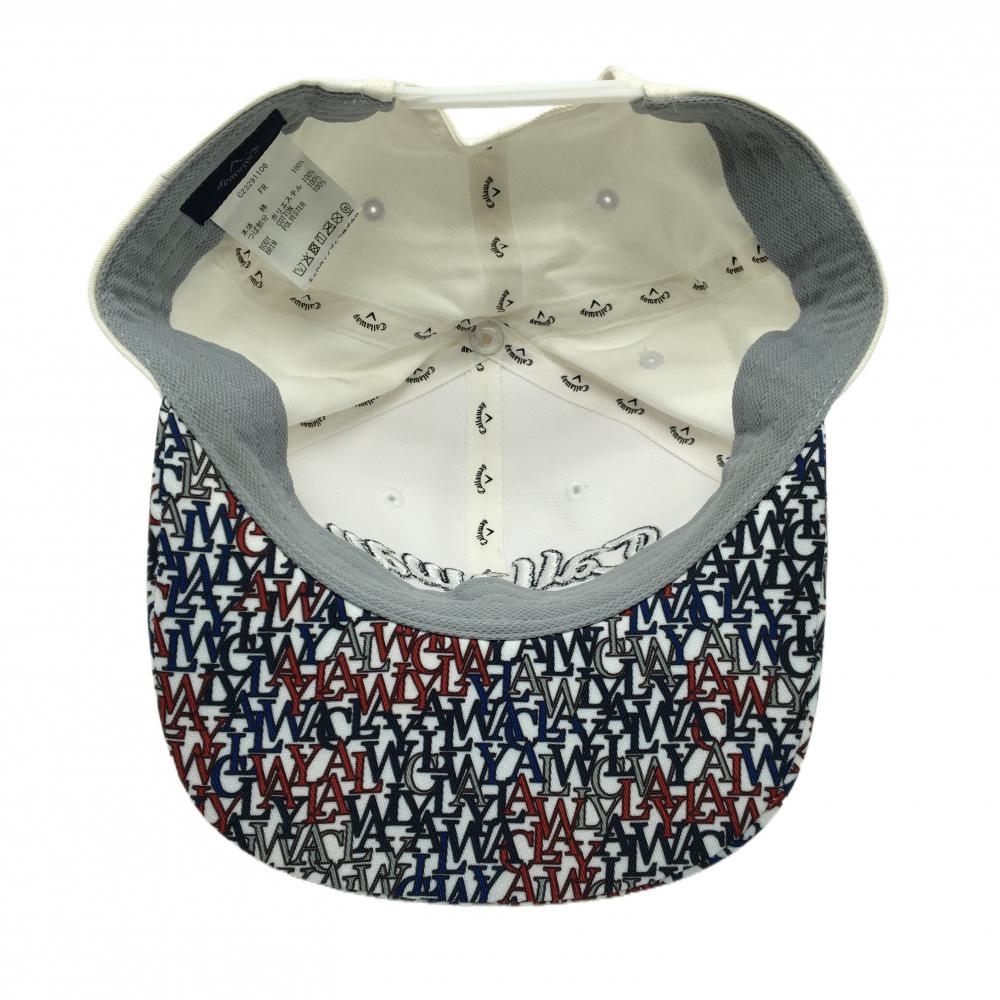 キャロウェイ フラットキャップ 白×ネイビー つばロゴ総柄 FR ゴルフウェア Callaway