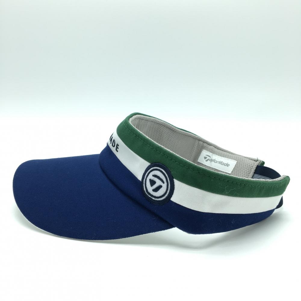 【美品】テーラーメイド サンバイザー ネイビー×グリーン フロントロゴ フリー(55-57cm) ゴルフウェア TaylorMade