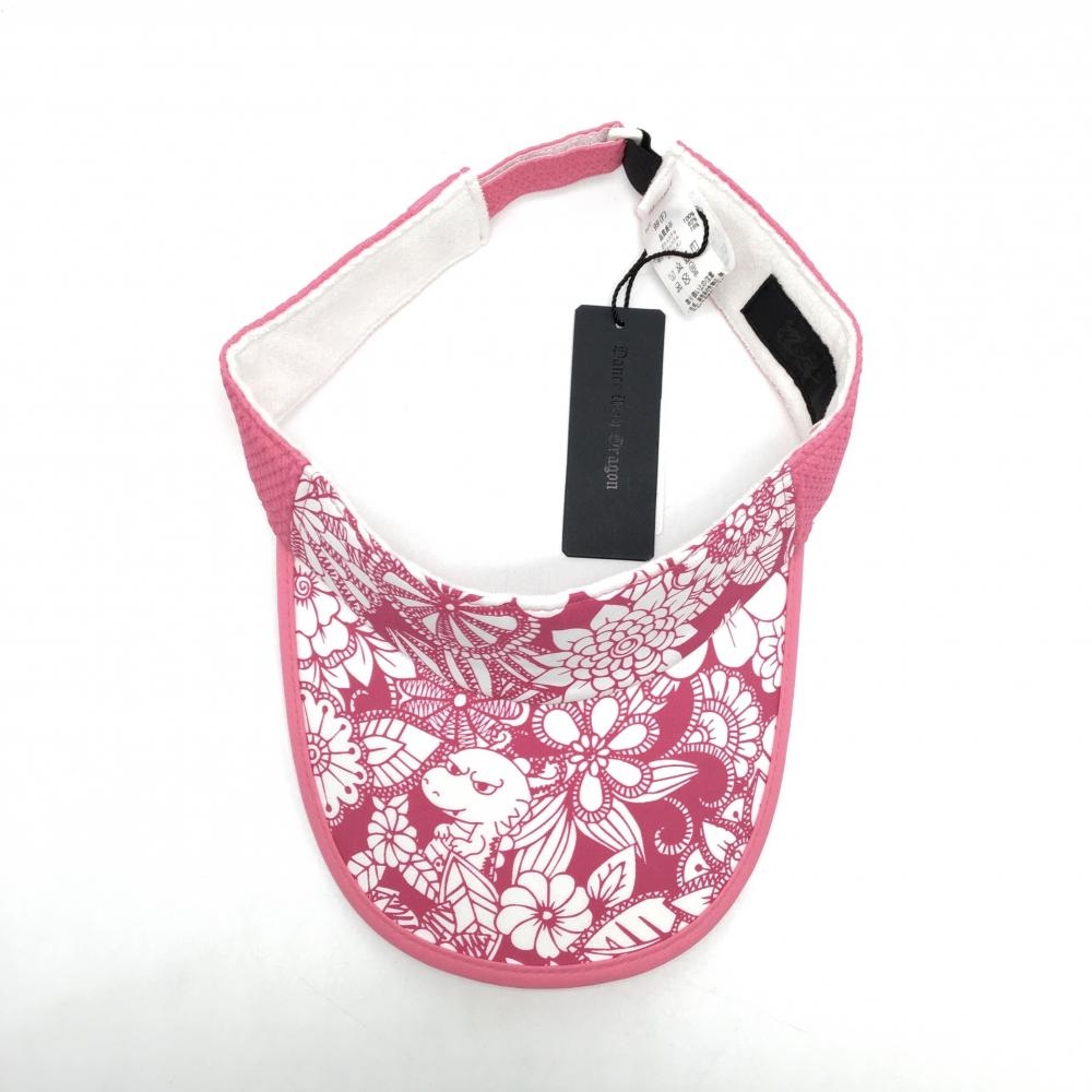 【新品】ダンスウィズドラゴン サンバイザー ピンク×白 チビドラ 総柄 99(F) ゴルフウェア Dance With Dragon