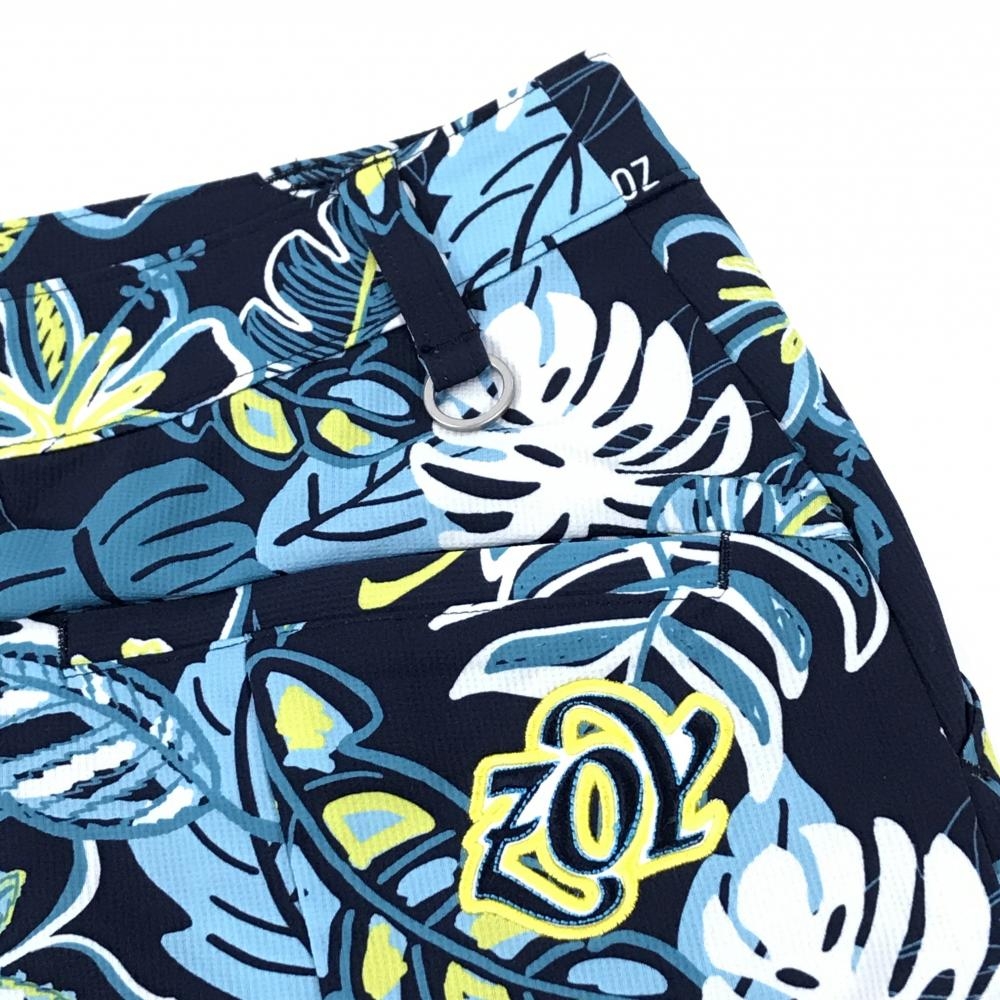 【超美品】ゾーイ スカート ネイビー×イエロー×白 リーフ総柄 レディース 36(S) ゴルフウェア ZOY