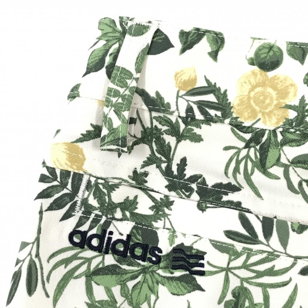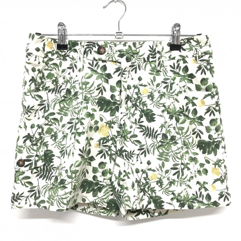 【美品】アディダス ショートパンツ 白×グリーン リーフ総柄 レディース M/M ゴルフウェア adidas