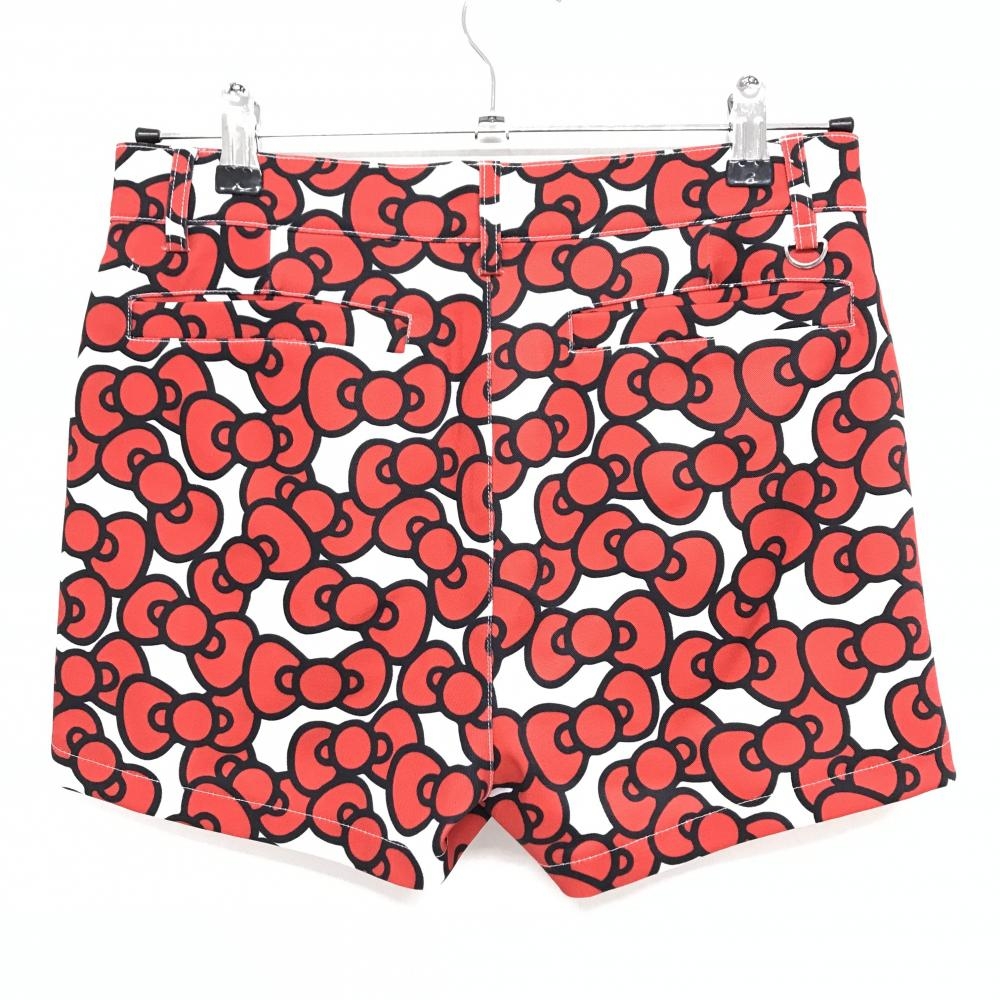 【超美品】キスオンザグリーン×ハローキティ ショートパンツ レッド×白 リボン総柄 レディース 2(M) ゴルフウェア kiss on the green
