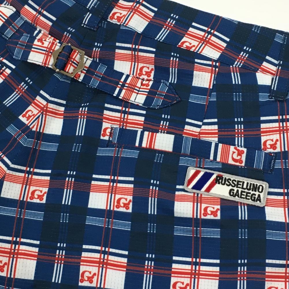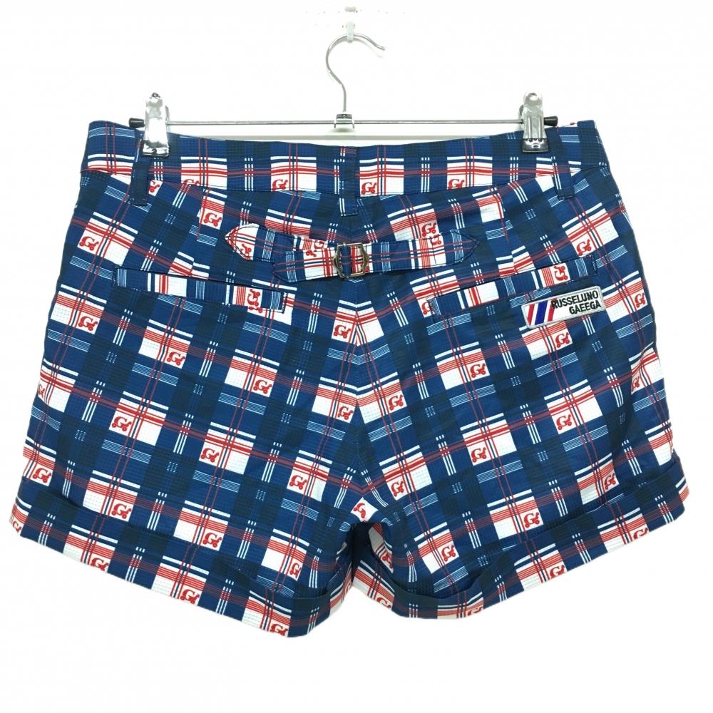 【超美品】ラッセルノ Gaeega ショートパンツ ネイビー系×白×レッド チェック レディース 2(L) ゴルフウェア RUSSELUNO