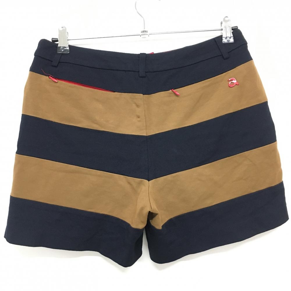 【美品】アルチビオ ショートパンツ ダークネイビー×ブラウン ボーダー 内側インナーパンツ レディース 40(L) ゴルフウェア archivio