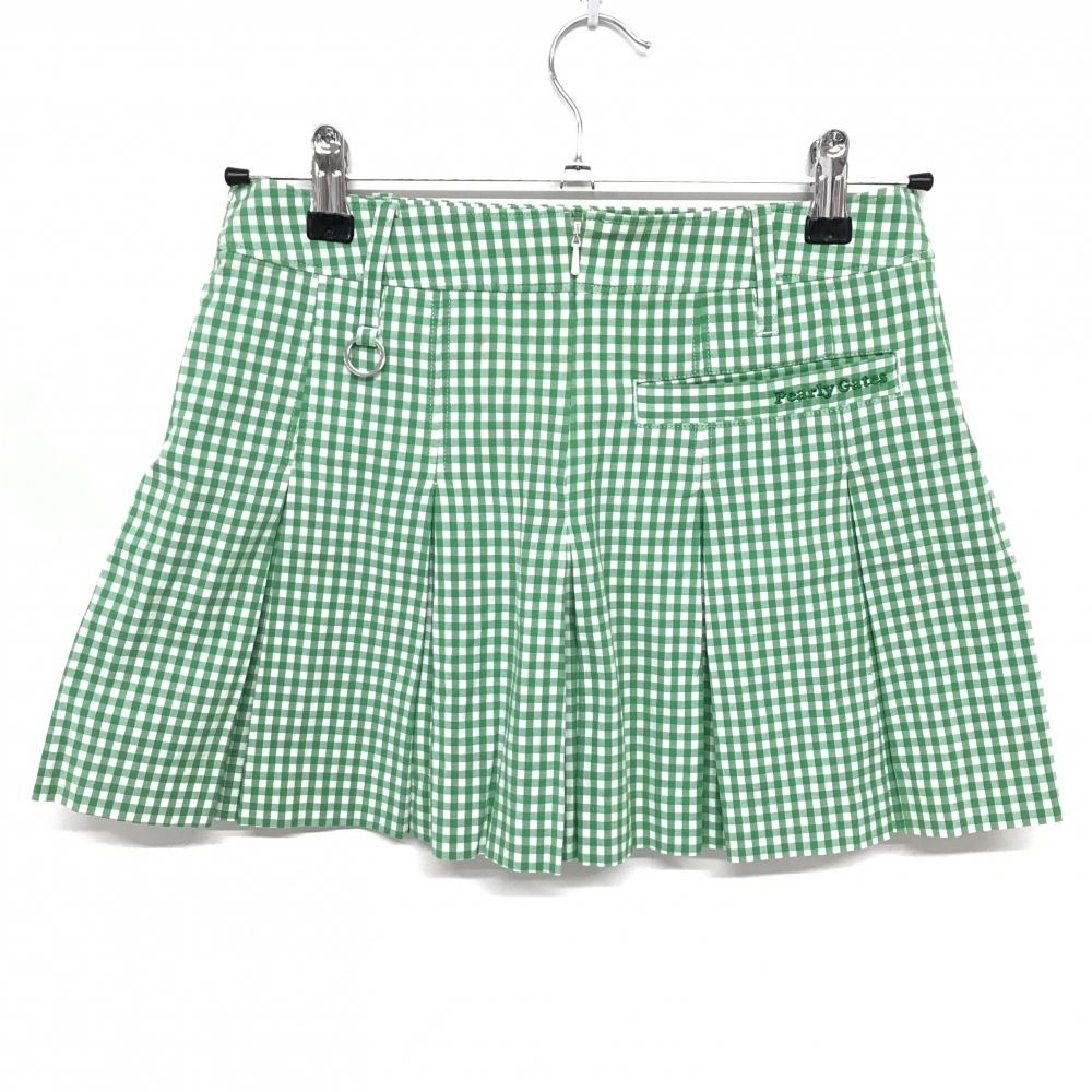 パーリーゲイツ プリーツスカート グリーン×白 ギンガムチェック ストレッチ レディース 0(S) ゴルフウェア PEARLY GATES