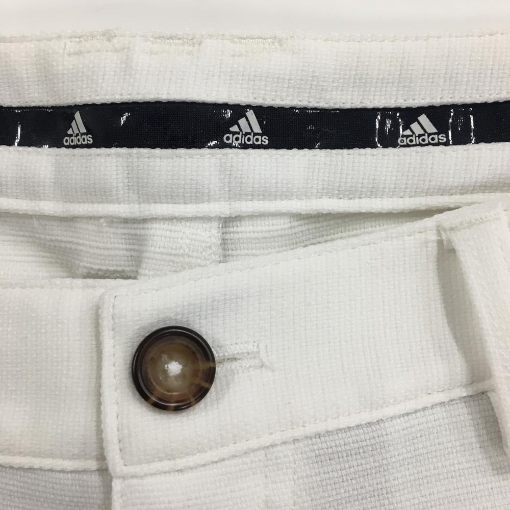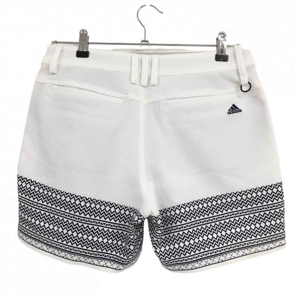 【美品】アディダス ショートパンツ 白×ネイビー 裾ギザギザ柄 ロゴ刺しゅう レディース L/G ゴルフウェア adidas