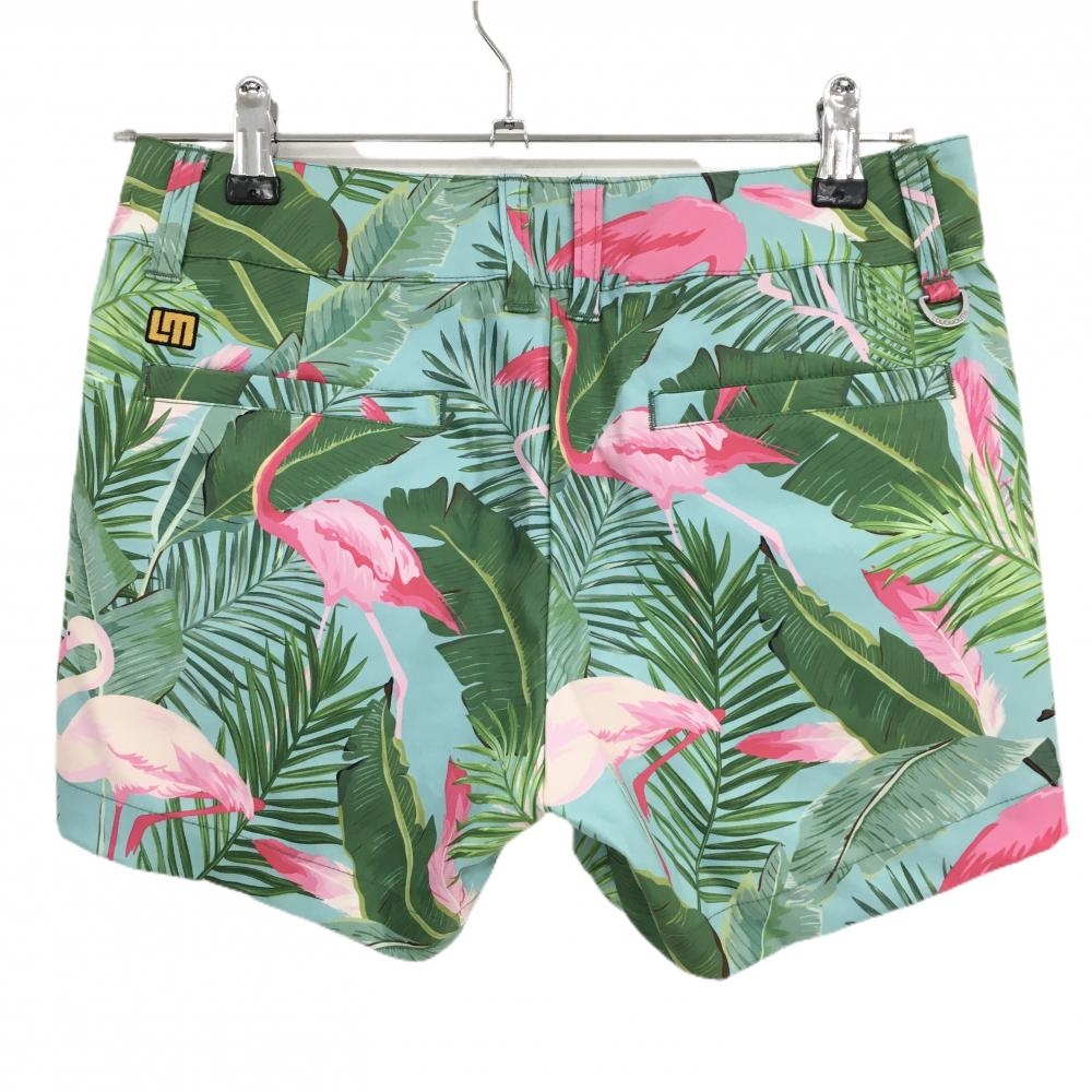 【超美品】ラウドマウス ショートパンツ グリーン×ピンク リーフ・フラミンゴ総柄 レディース M ゴルフウェア LOUDMOUTH