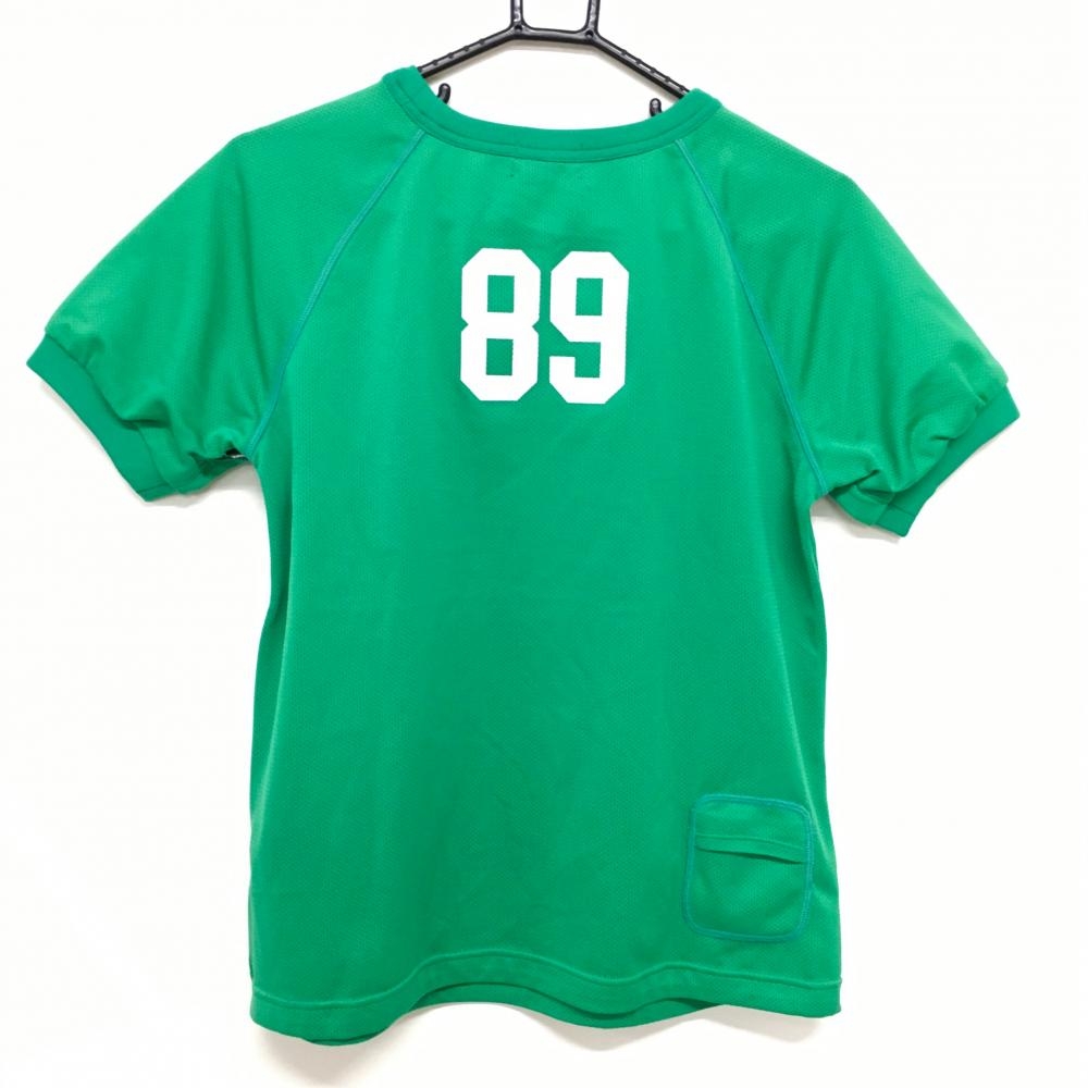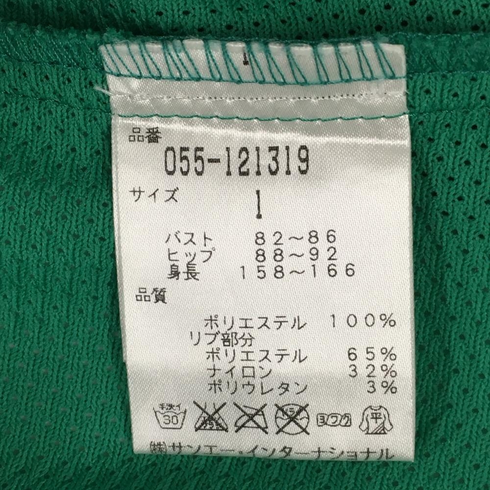 【美品】パーリーゲイツ Tシャツ グリーン×白 メッシュ フロントロゴ サイドジップ レディース 1(M) ゴルフウェア PEARLY GATES