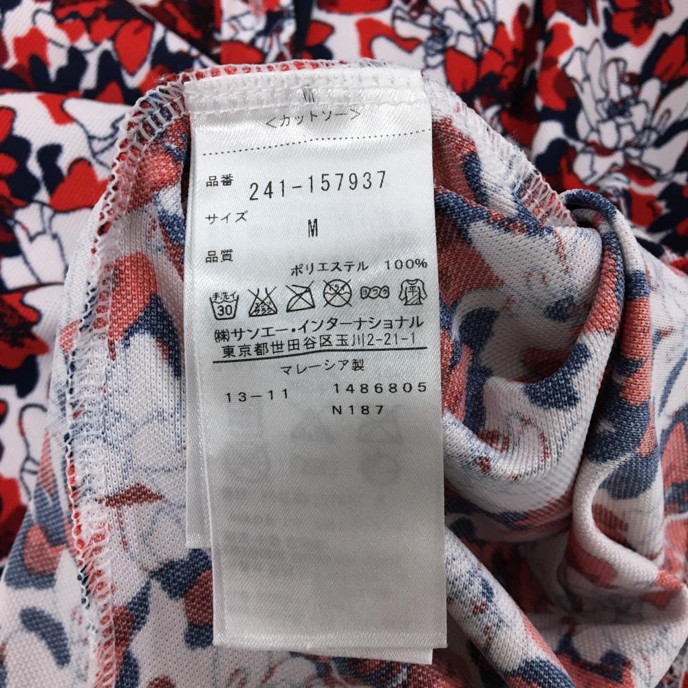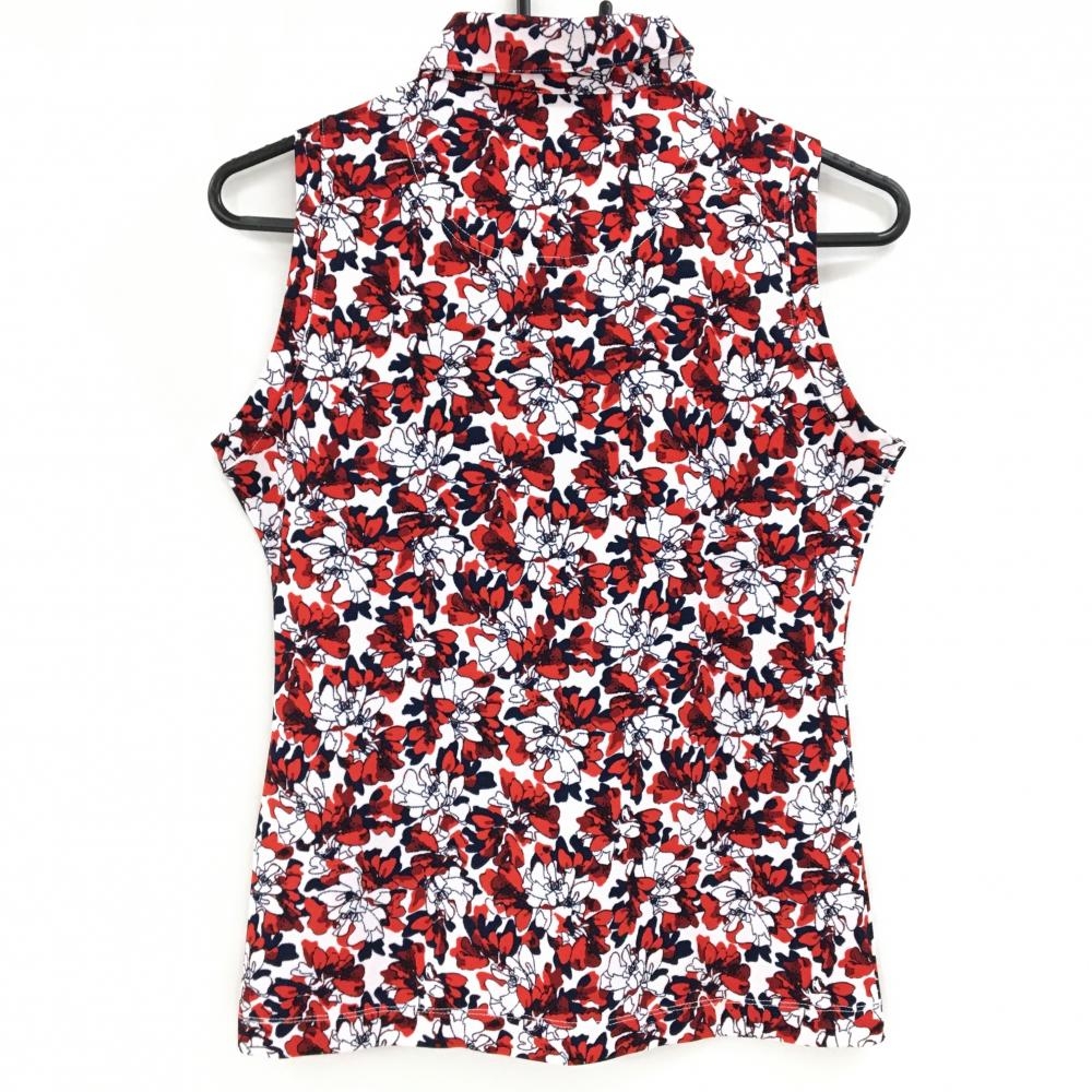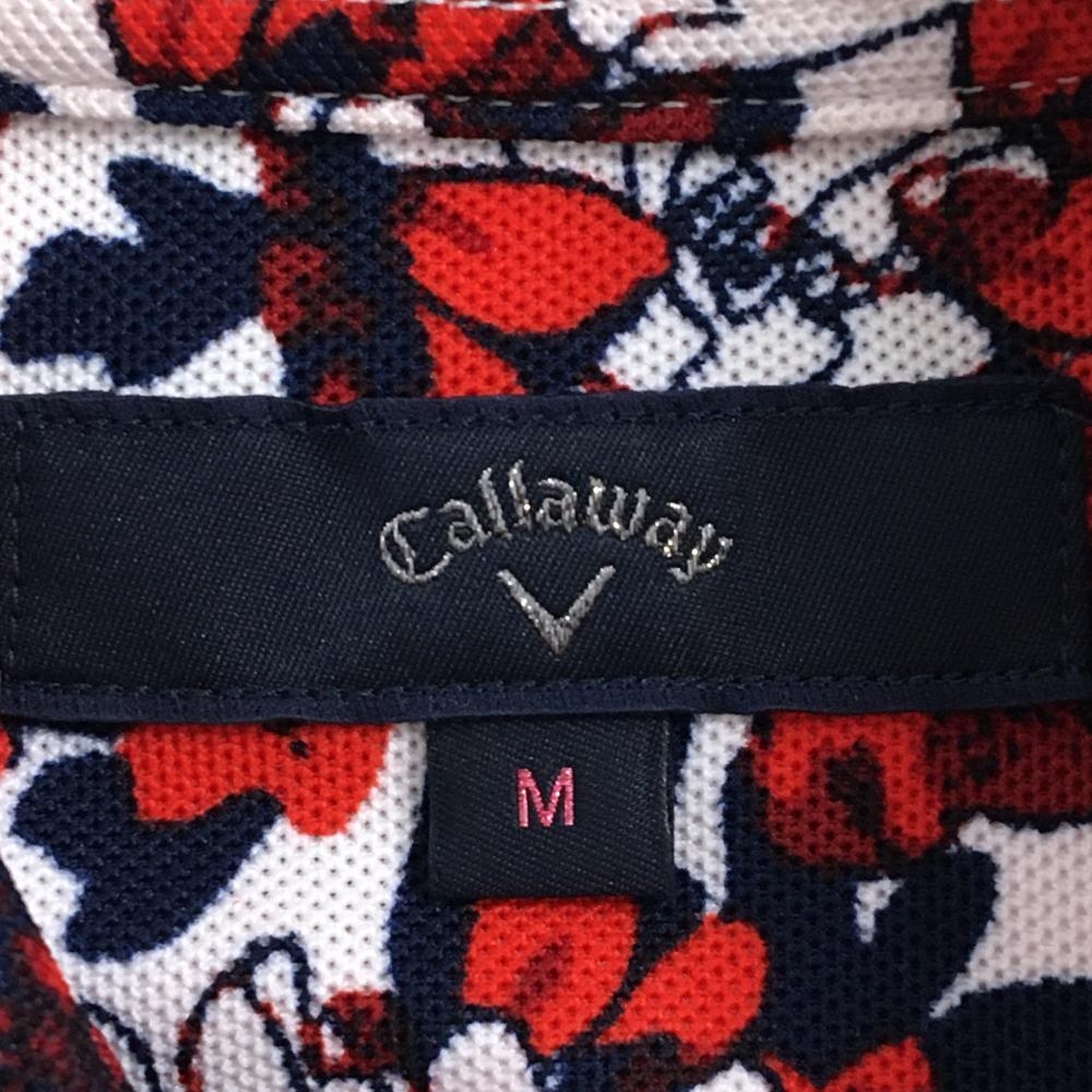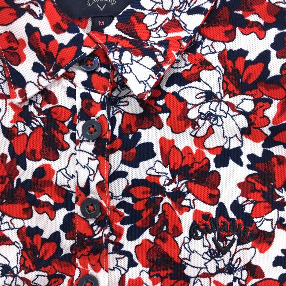 キャロウェイ ノースリーブポロシャツ 白×レッド 花柄 ロゴ刺しゅう レディース M ゴルフウェア Callaway
