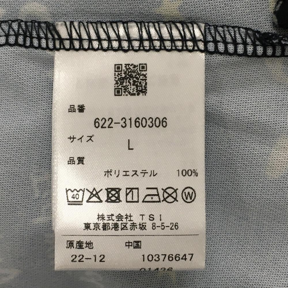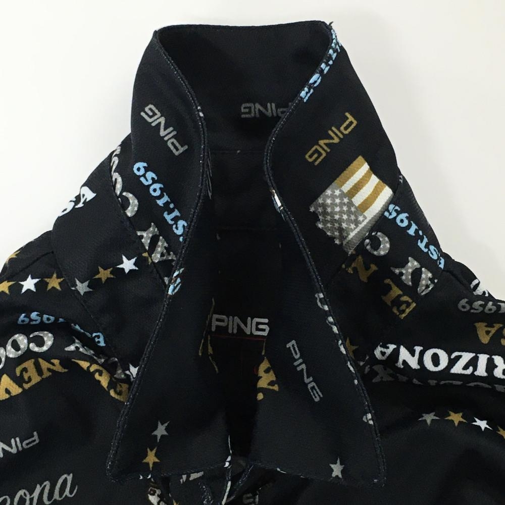 【美品】ピン ノースリーブポロシャツ ダークネイビー×グレー 総柄 レディース L ゴルフウェア PING
