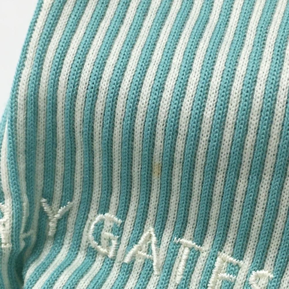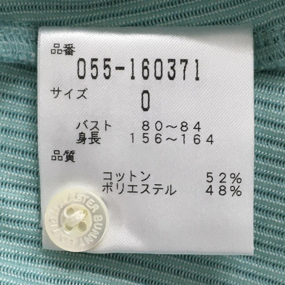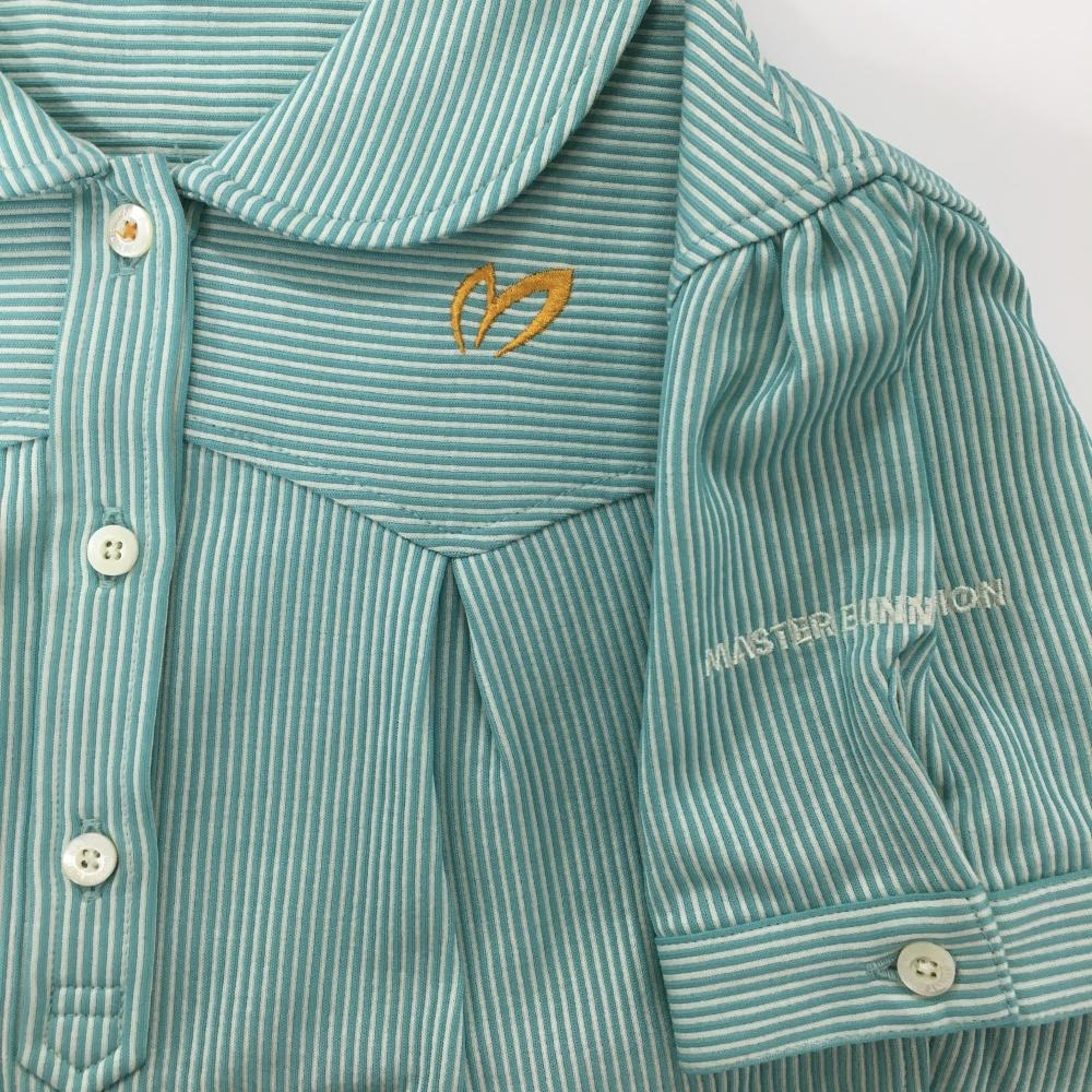 【美品】マスターバニー 半袖ポロシャツ グリーン×白 ストライプ 丸襟 レディース 0(S) ゴルフウェア MASTER BUNNY EDITION