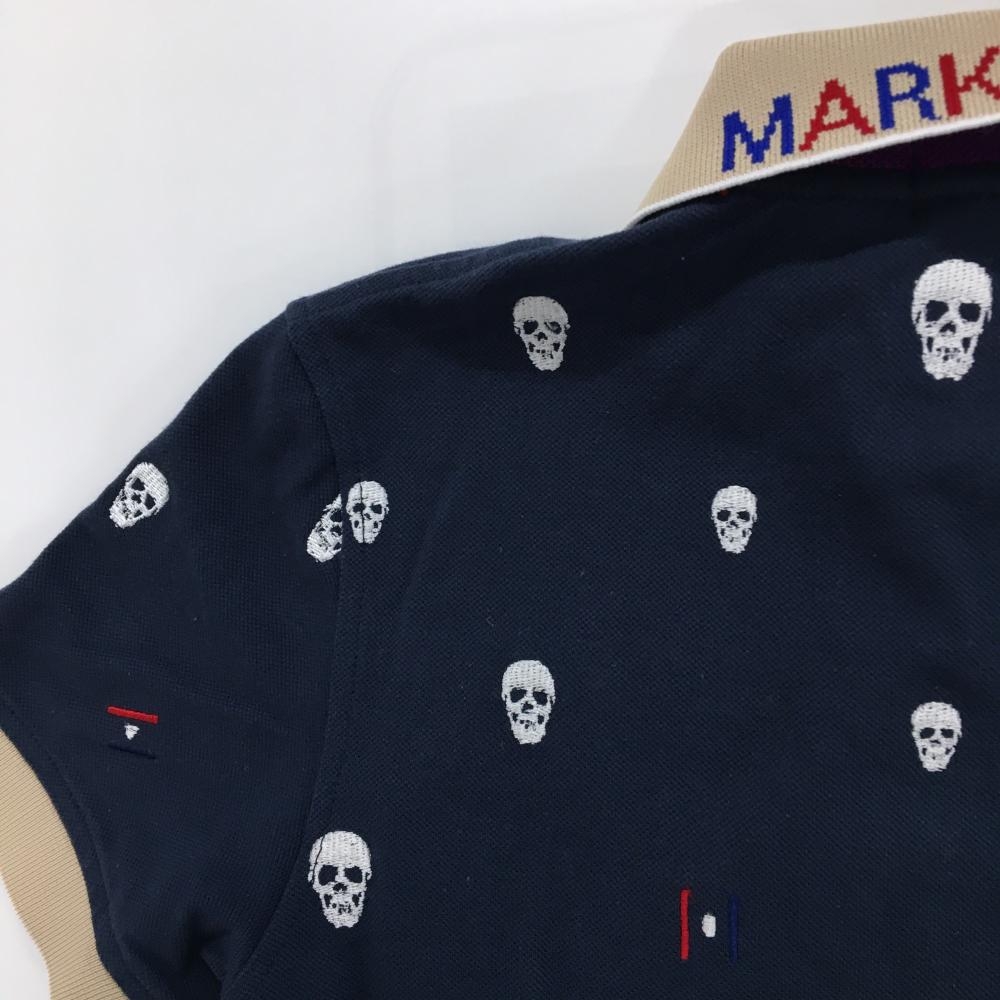 マークアンドロナ 半袖ポロシャツ ネイビー×白 スカル刺しゅう総柄 レディース S ゴルフウェア MARK&LONA