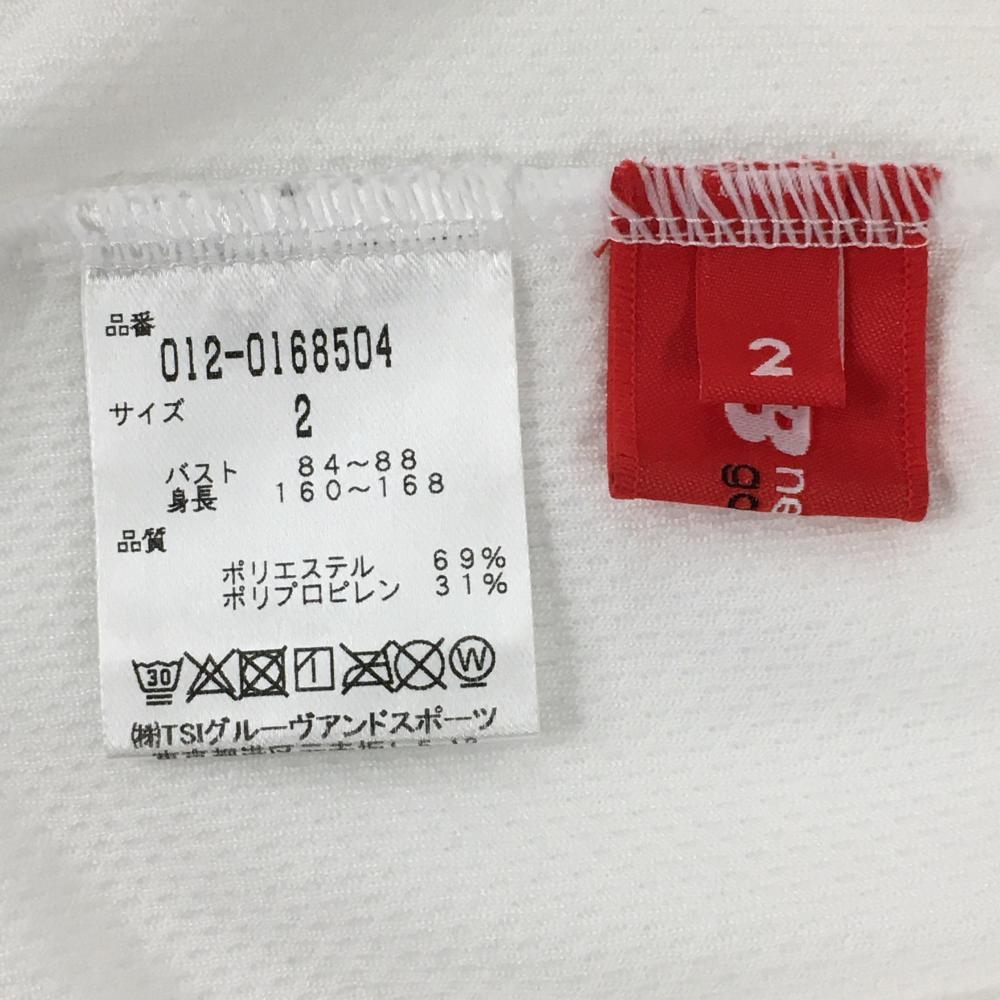 【美品】ニューバランスゴルフ 半袖ポロシャツ 白×ネイビー フロントプリント 犬 レディース 2(L) ゴルフウェア New Balance