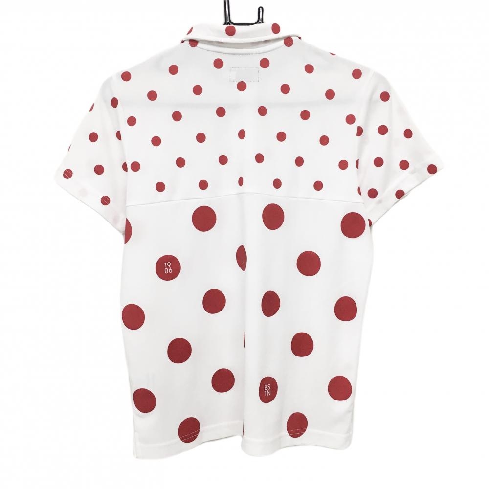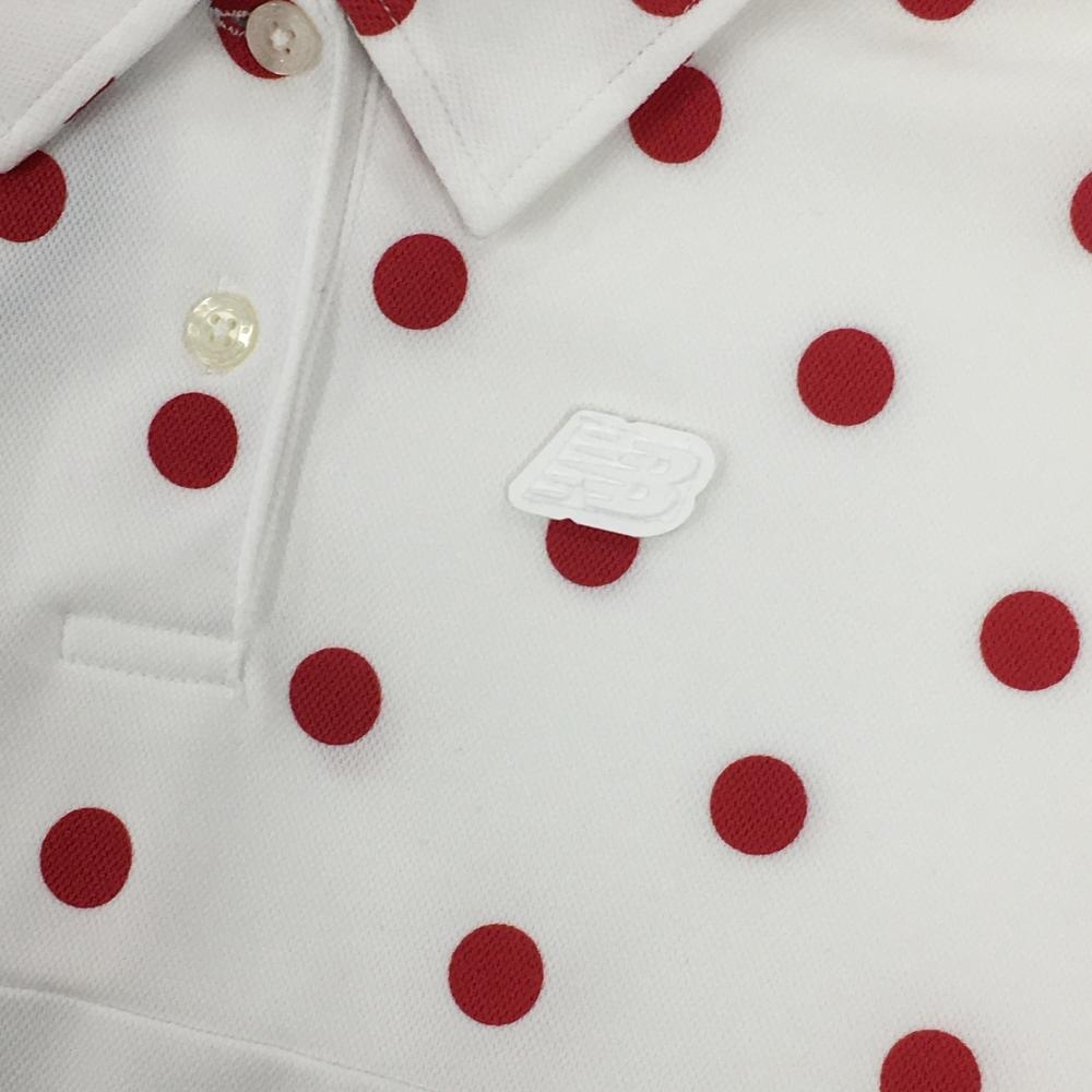 【美品】ニューバランスゴルフ 半袖ポロシャツ 白×レッド ドット柄 ロゴワッペン レディース 2(L) ゴルフウェア New Balance
