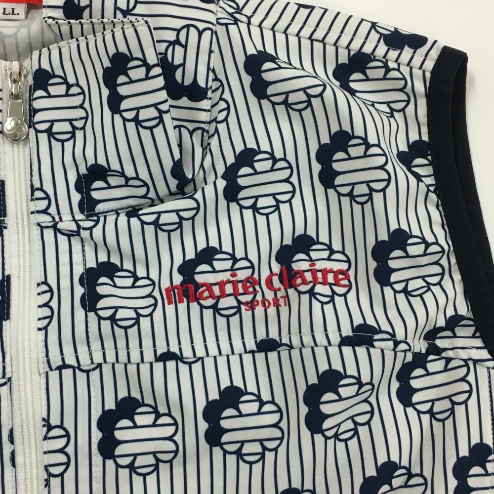 【超美品】マリクレールスポール ノースリーブワンピース 白×ネイビー 花柄 ストライプ レディース LL ゴルフウェア marie claire
