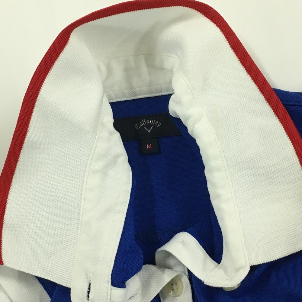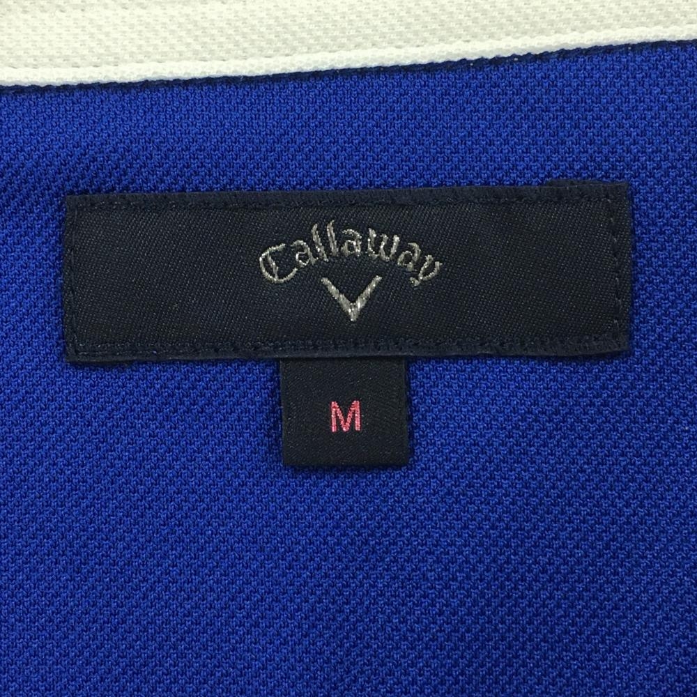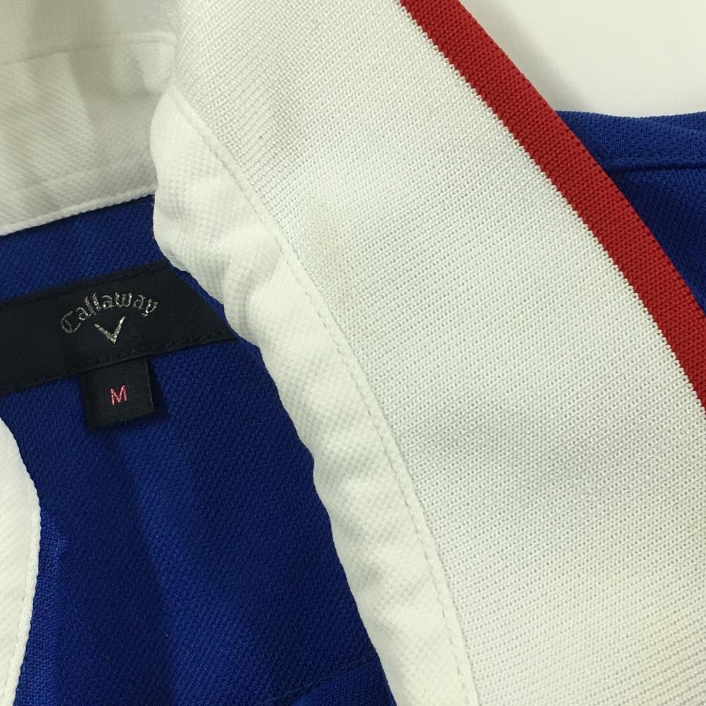 【美品】キャロウェイ ノースリーブポロワンピース ブルー×白 上半身ボーダー ロゴ刺しゅう レディース M ゴルフウェア Callaway