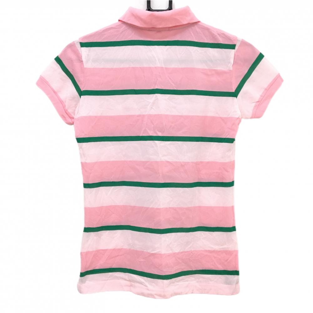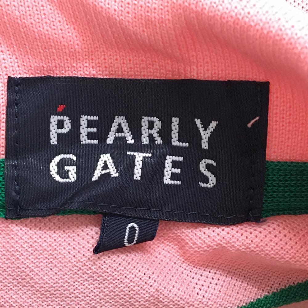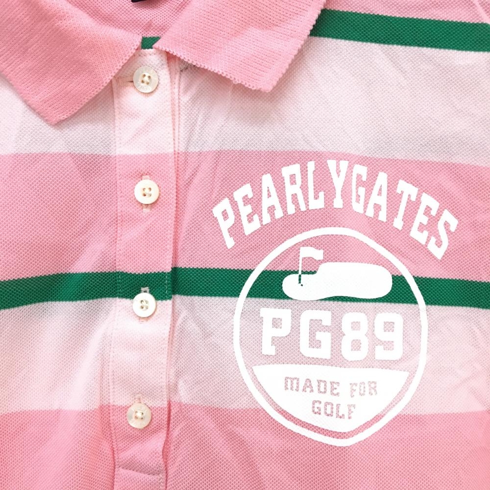 【美品】パーリーゲイツ 半袖ポロシャツ ピンク×グリーン ボーダー ロゴプリント レディース 0(S) ゴルフウェア PEARLY GATES