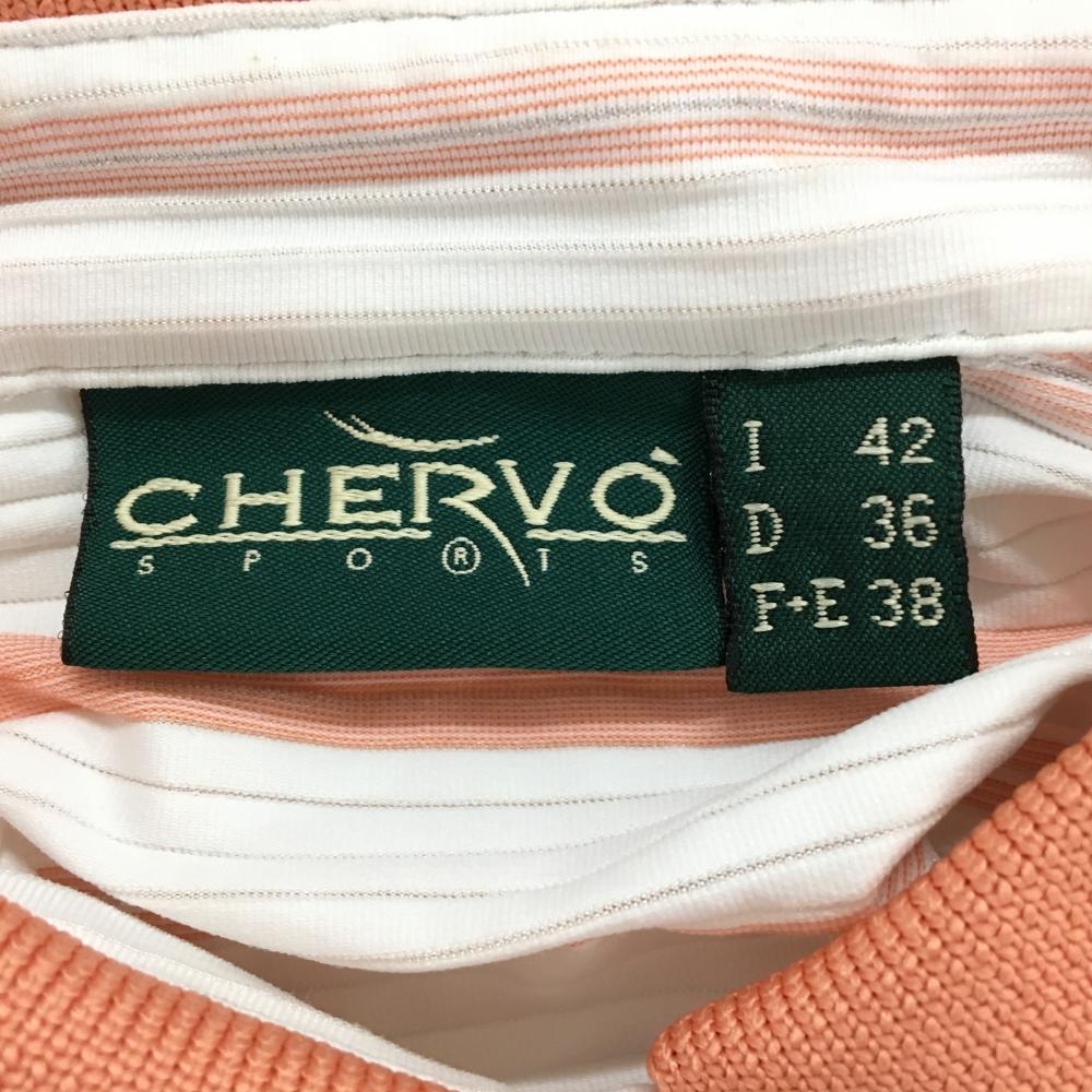 シェルボ 半袖ポロシャツ 白×ライトピンク ボーダー レディース USA-S ゴルフウェア CHERVO